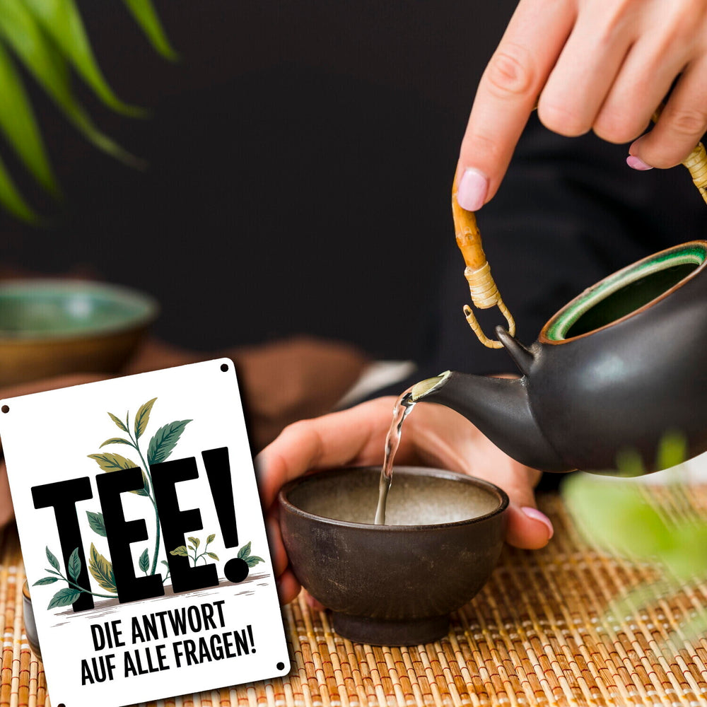 TEE - die Antwort auf alle Fragen Metallschild in 15x20 cm für Teeliebhaber