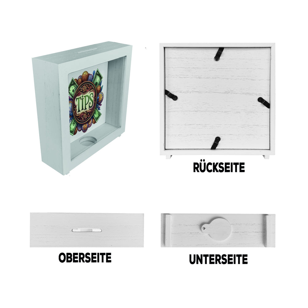 - 1x Trinkgeld Retro Spardose mit Spruch Tips in der gewählten Ausführung