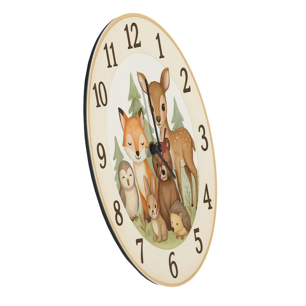 Waldtiere Aquarellstil Wanduhr für Tierliebhaber