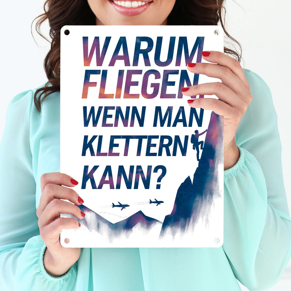Warum fliegen, wenn man klettern kann Metallschild in 15x20 cm