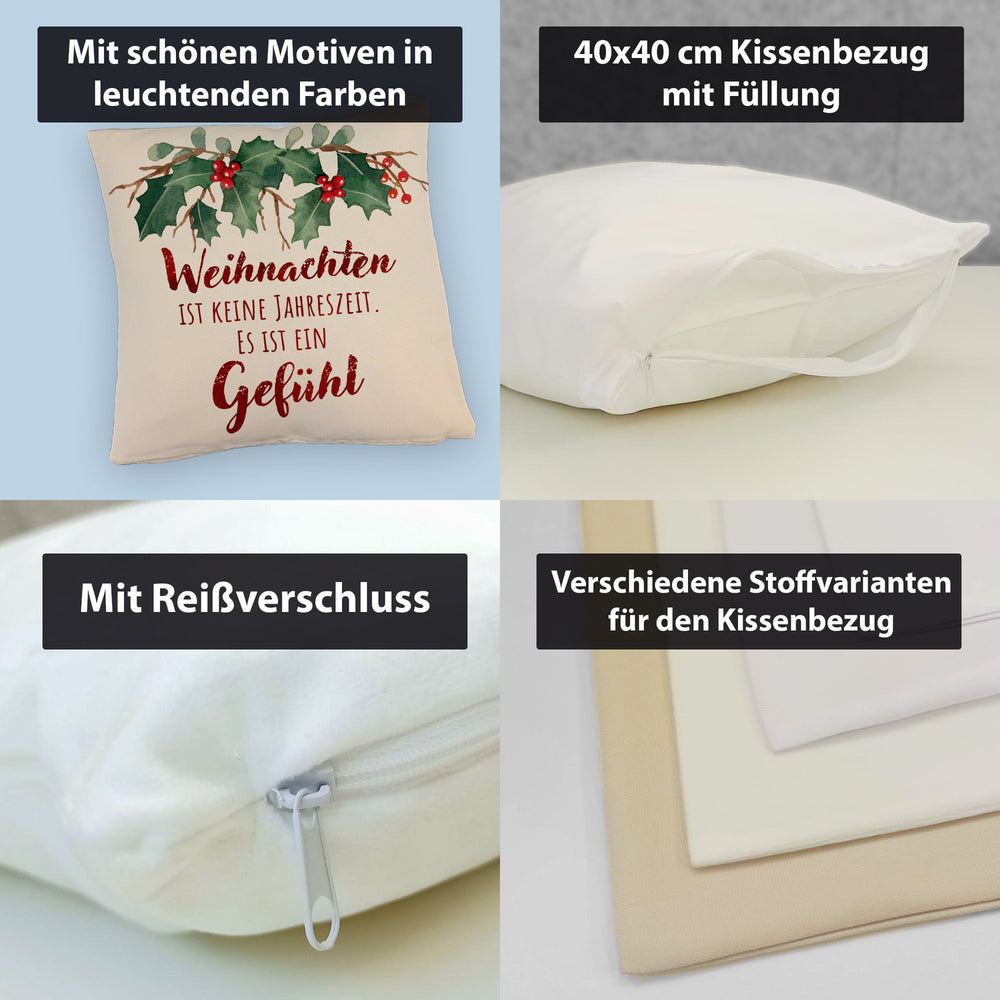 • 1x Weihnachten ist ein Gefühl Kissen mit Spruch in der gewählten Ausführung