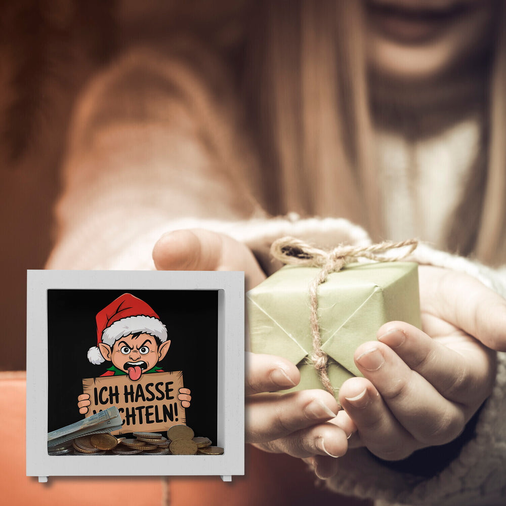 - 1x Weihnachtswichtel Ich hasse Wichteln Spardose in der gewählten Ausführung