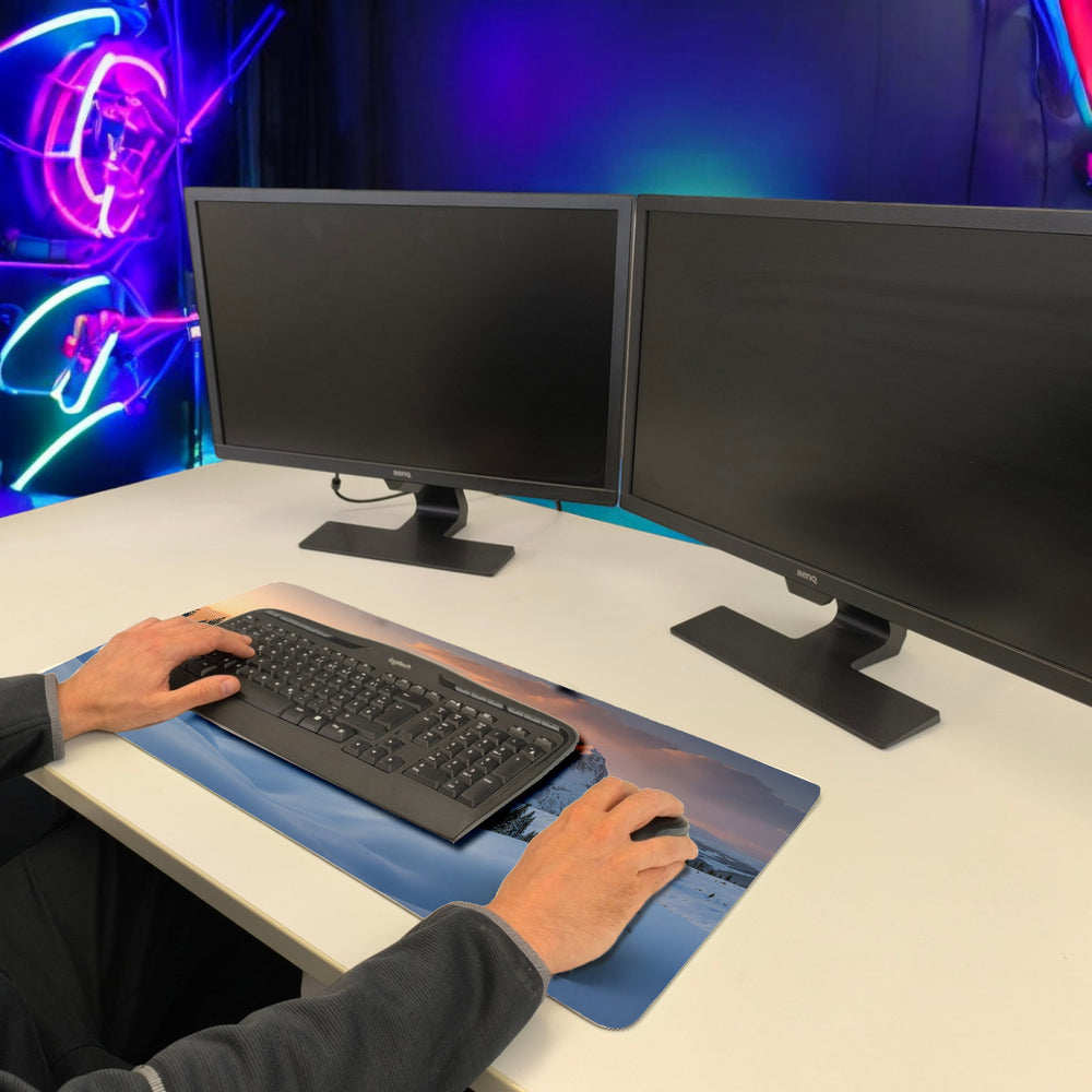 - 1x Winterliche Berglandschaft Schreibtischunterlage 69x31cm XXL Mauspad mit Sonnenuntergang in der gewählten Größe