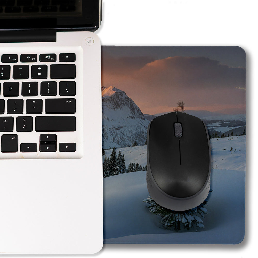 - Diese Schreibtischunterlage bringt die Magie eines winterlichen Sonnenuntergangs direkt auf Ihren Tisch. Schneebedeckte Berge und ein goldenes Lichtspiel bieten einen dramatischen Kontrast. Dunkle Pinien und Fichten tragen den Schnee majestätisch, während zarte Wolken in warmen Farben über die Landschaft wehen. Die perfekte Harmonie aus kühler Eleganz und frohen Farbtupfern.