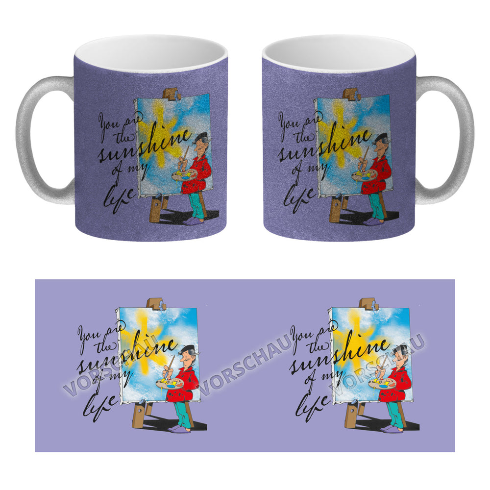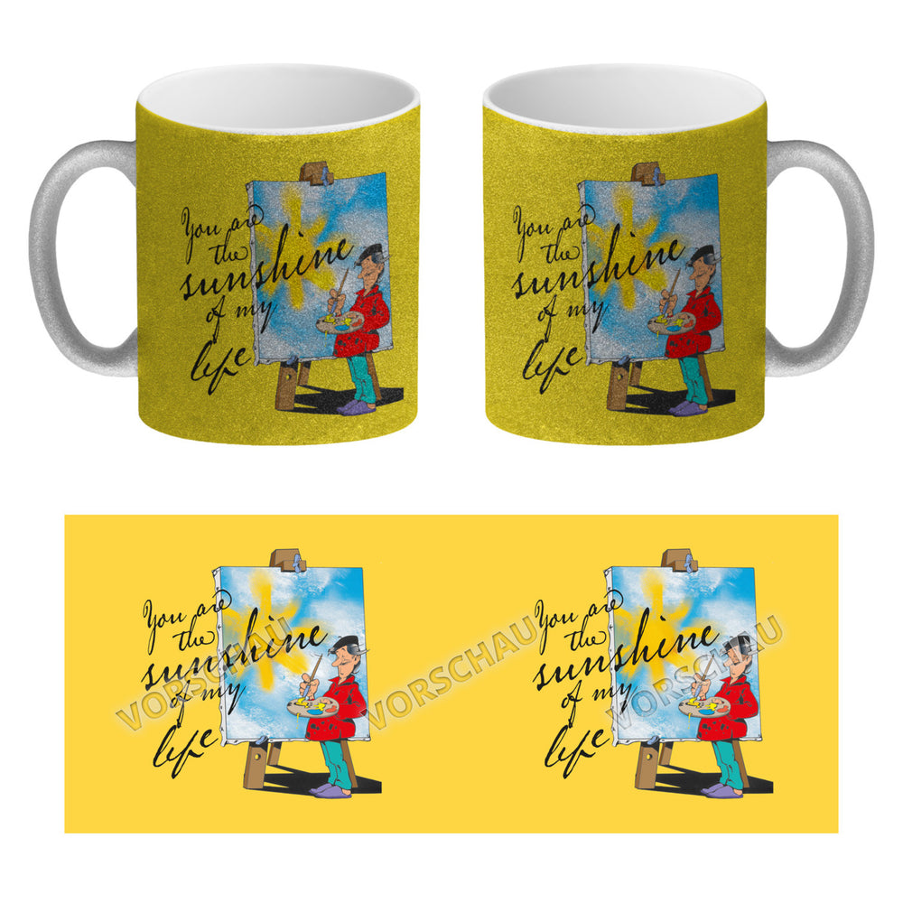 - 1x You are the sunshine of my life Kaffeebecher mit Staffelei Motiv in der gewählten Ausführung
