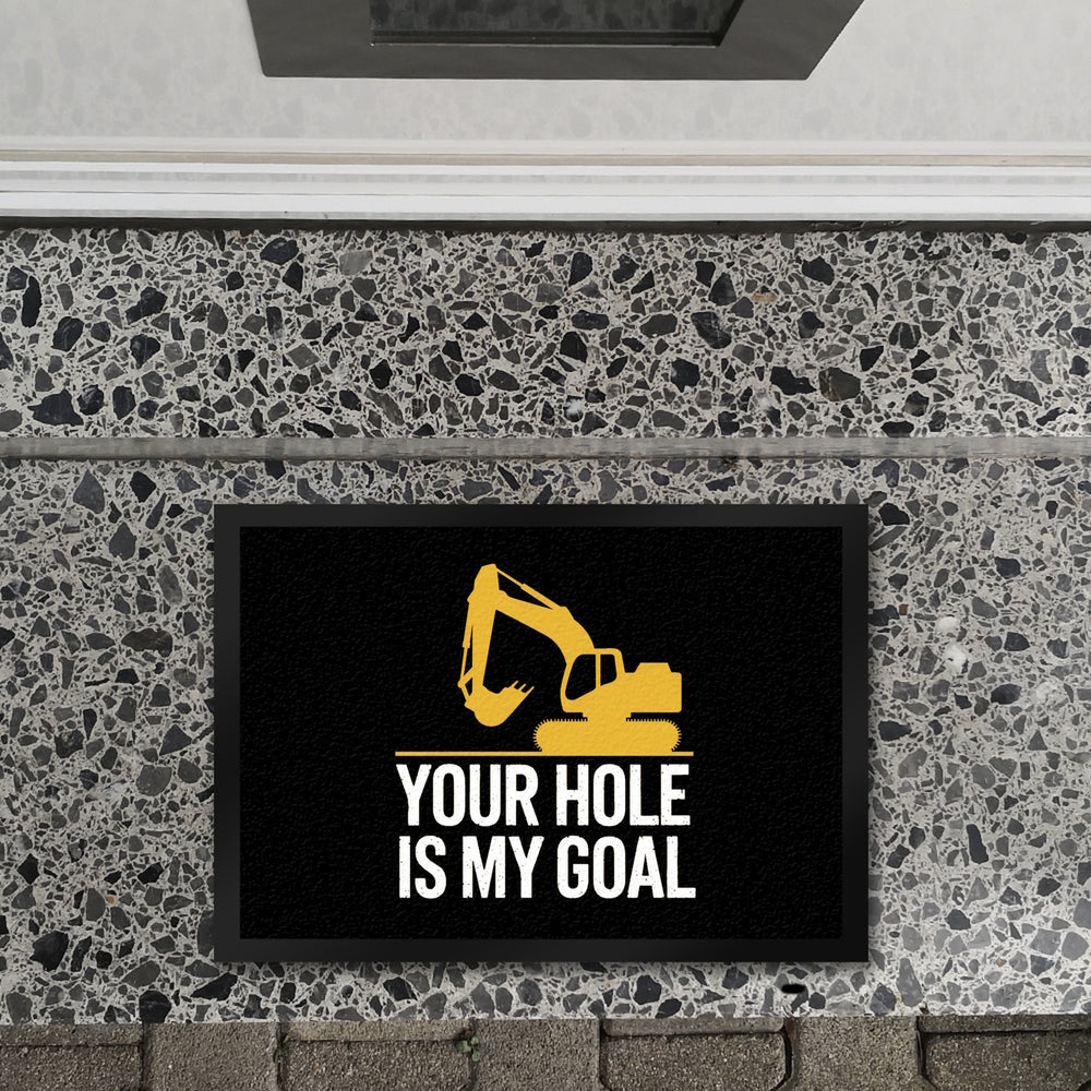 YOUR HOLE IS MY GOAL Fußmatte in 35x50 cm mit gelbem Bagger