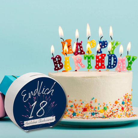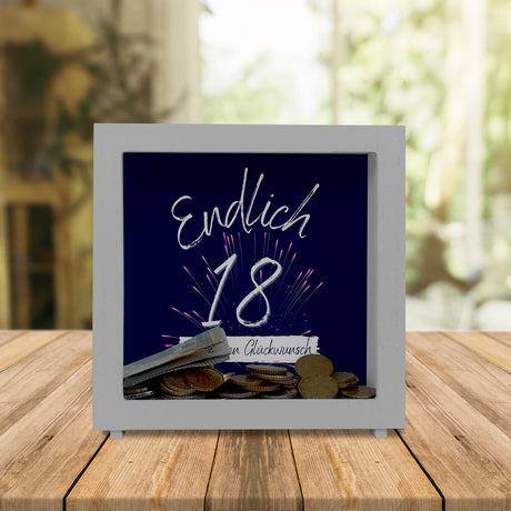 Ab €6,95Grundpreis /Nicht verfügbarAuf LagerEndlich 18 Spardose mit Spruch Herzlichen Glückwunsch