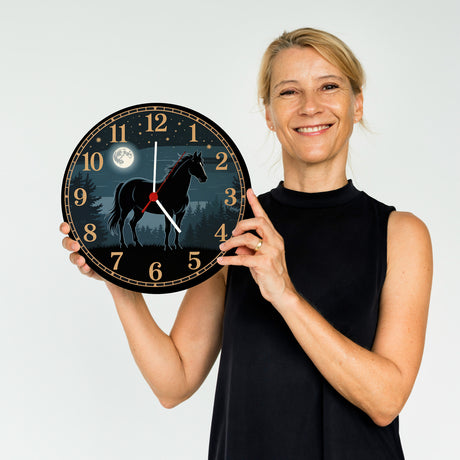 Ab €19,95Grundpreis /Nicht verfügbarAuf LagerPferdeträume Pferd Vollmond im Wald Wanduhr für Pferdefans