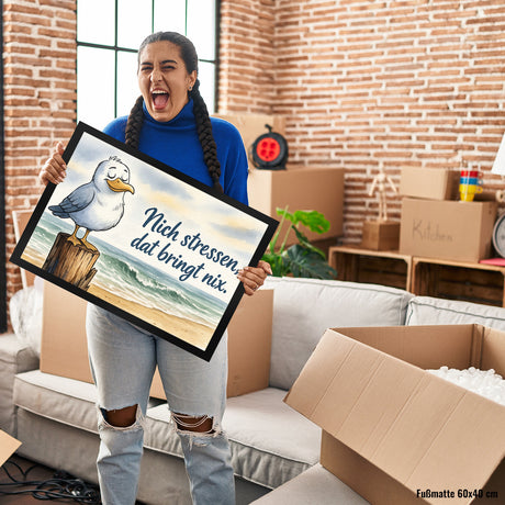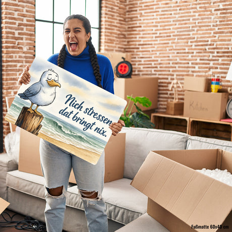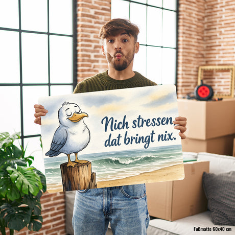 Ab €19,95Grundpreis /Nicht verfügbarAuf LagerMöwe Nich stressen auf Aquarell Fußmatte in 35x50 cm ohne Rand