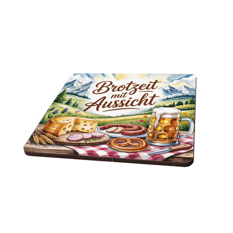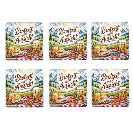 Chiemgau Almpicknick 6er Set Untersetzer aus Holz - Brotzeit mit Aussicht