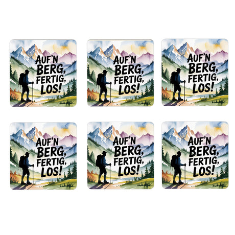 €9,95Grundpreis /Nicht verfügbarAuf LagerChiemgau Wanderer 6er Set Untersetzer aus Holz - Auf'n Berg, fertig, los!