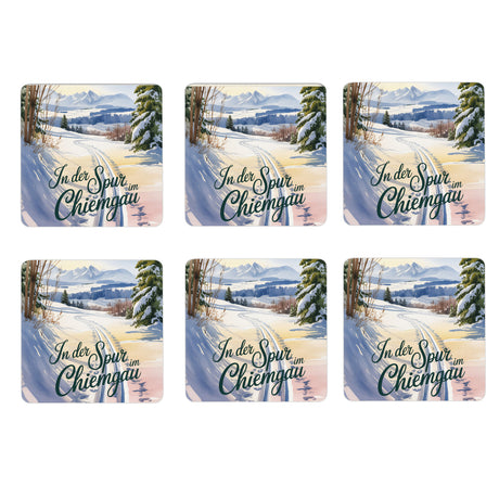 Ab €8,95Grundpreis /Nicht verfügbarAuf LagerChiemgau Langlauf 6er Set Untersetzer aus Holz - In der Spur im Chiemgau