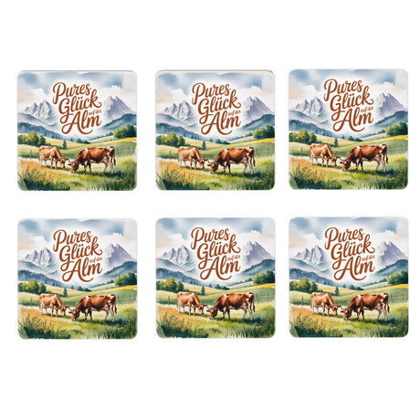 €9,95Grundpreis /Nicht verfügbarAuf LagerChiemgau Kühe auf der Alm 6er Set Untersetzer aus Holz - Pures Glück
