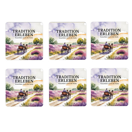 Lüneburger Heide Pferdekutsche 6er Set Untersetzer aus Holz - Tradition erleben