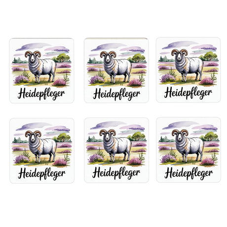 Ab €12,95Grundpreis /Nicht verfügbarAuf LagerLüneburger Heide Heidschnucke 6er Set Untersetzer aus Holz - Heidepfleger