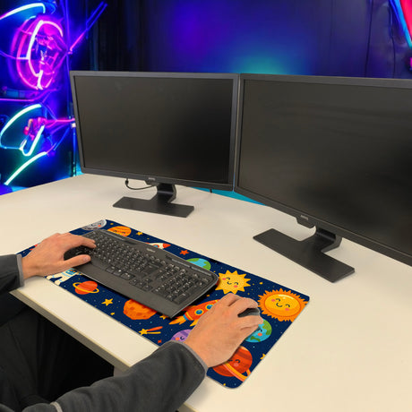 Ab €14,95Grundpreis /Nicht verfügbarAuf LagerWeltraum Cartoon Astronauten Schreibtischunterlage 69x31cm XXL Mauspad für Kinder
