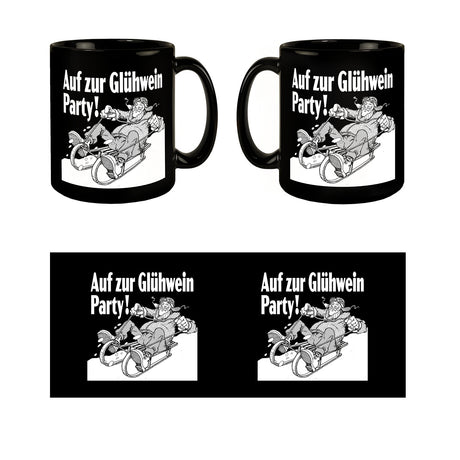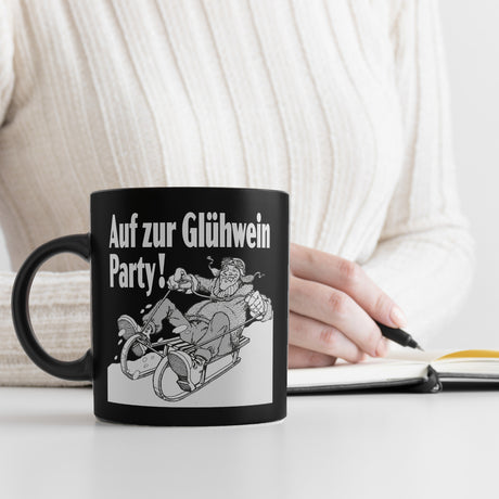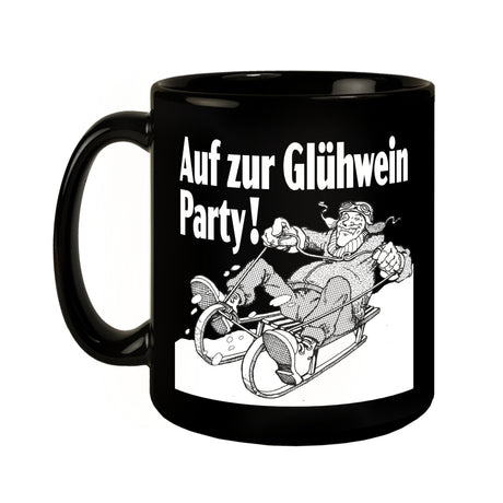 Ab €14,95Grundpreis /Nicht verfügbarAuf LagerMann auf Schlitten Tasse in Schwarz mit Spruch: Auf zur Glühwein Party