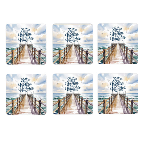 €9,95Grundpreis /Nicht verfügbarAuf LagerOstsee Seebrücke 6er Set Untersetzer aus Holz - Zeit für Wellen & Wunder