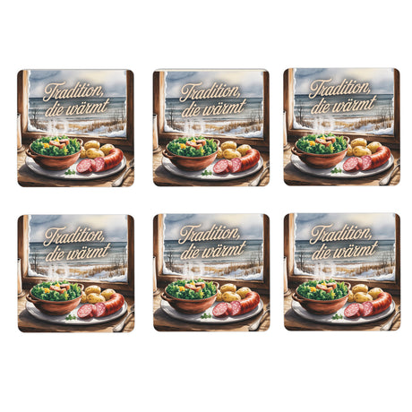 €9,95Grundpreis /Nicht verfügbarAuf LagerOstsee Grünkohl mit Pinkel 6er Set Untersetzer aus Holz - Tradition, die wärmt