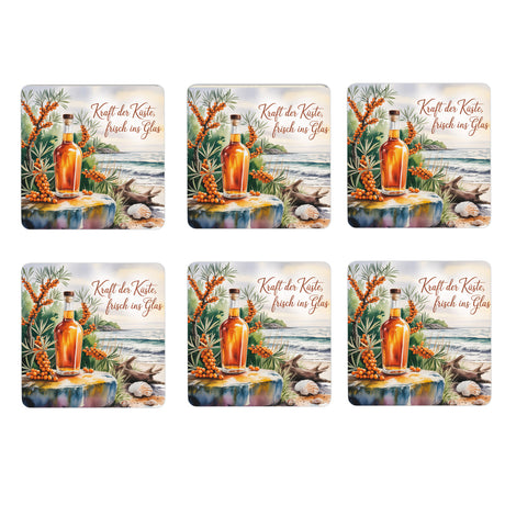 Ab €16,95Grundpreis /Nicht verfügbarAuf LagerOstsee Sanddornlikör 6er Set Untersetzer aus Holz - Kraft der Küste, frisch ins Glas