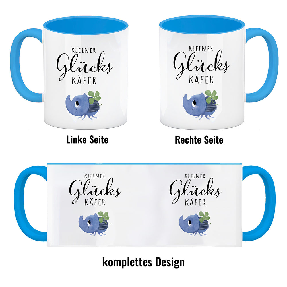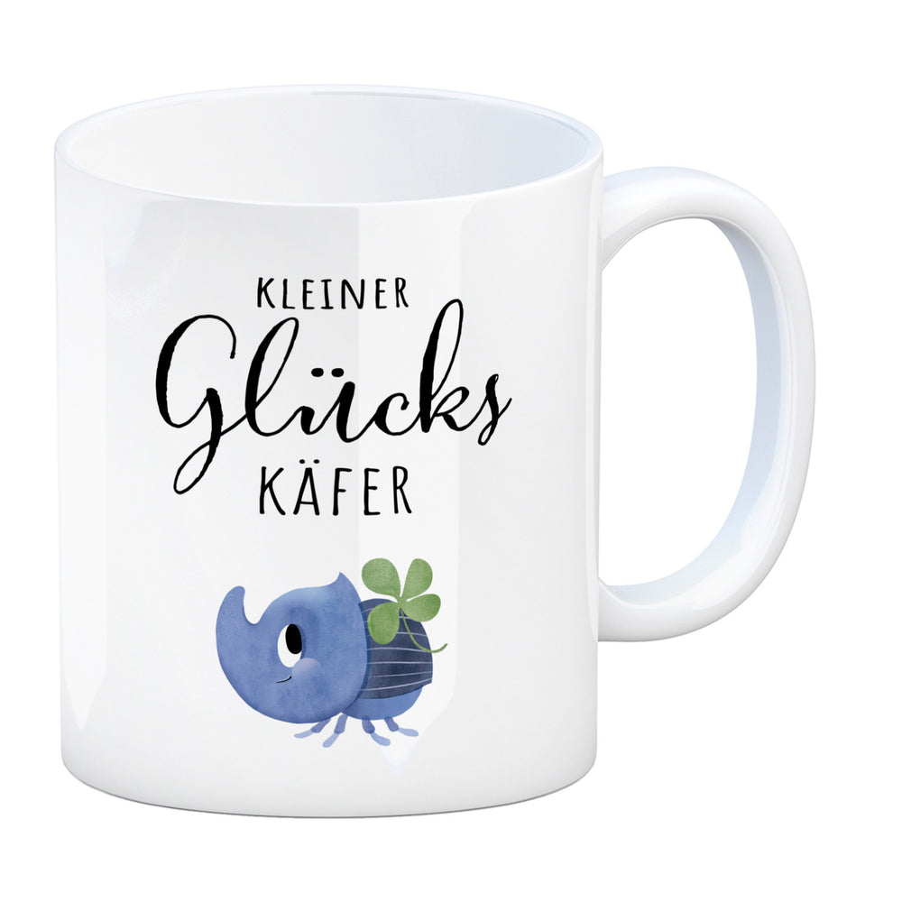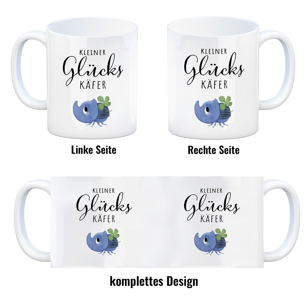 • 1x Nashornkäfer mit Klee Kaffeebecher mit Spruch Kleiner Glückskäfer in der gewählten Ausführung