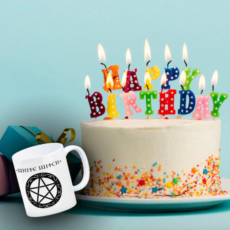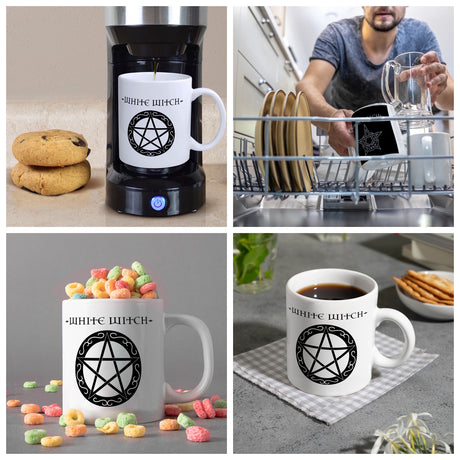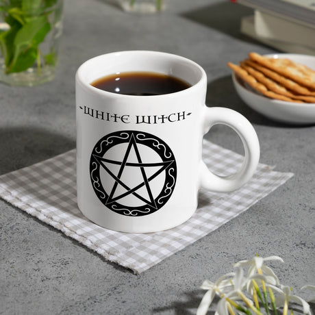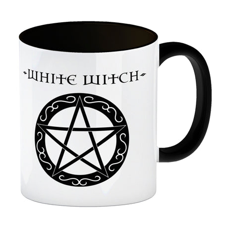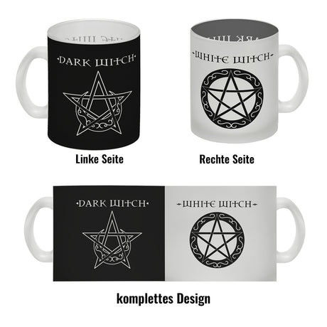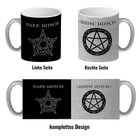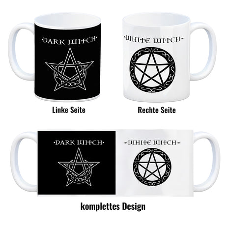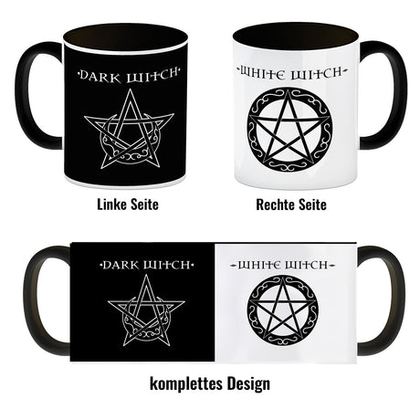 Kaffeebecher mit magischen Pentagrammen und Spruch - White Witch - Dark Witch