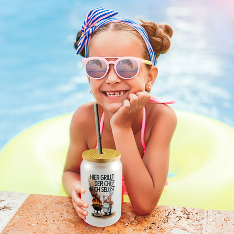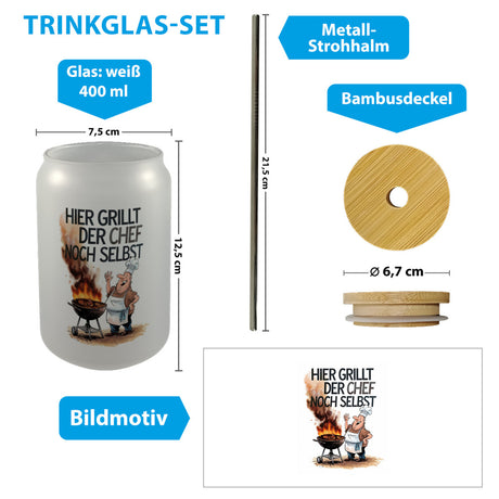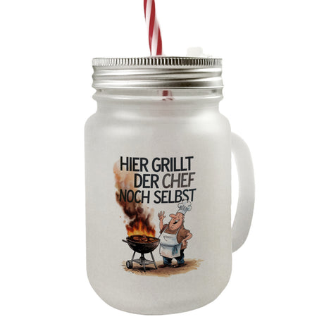 €15,49Grundpreis /Nicht verfügbar Fröhlicher Koch am Grill Trinkglas mit Bambusdeckel Chef grillt selbst