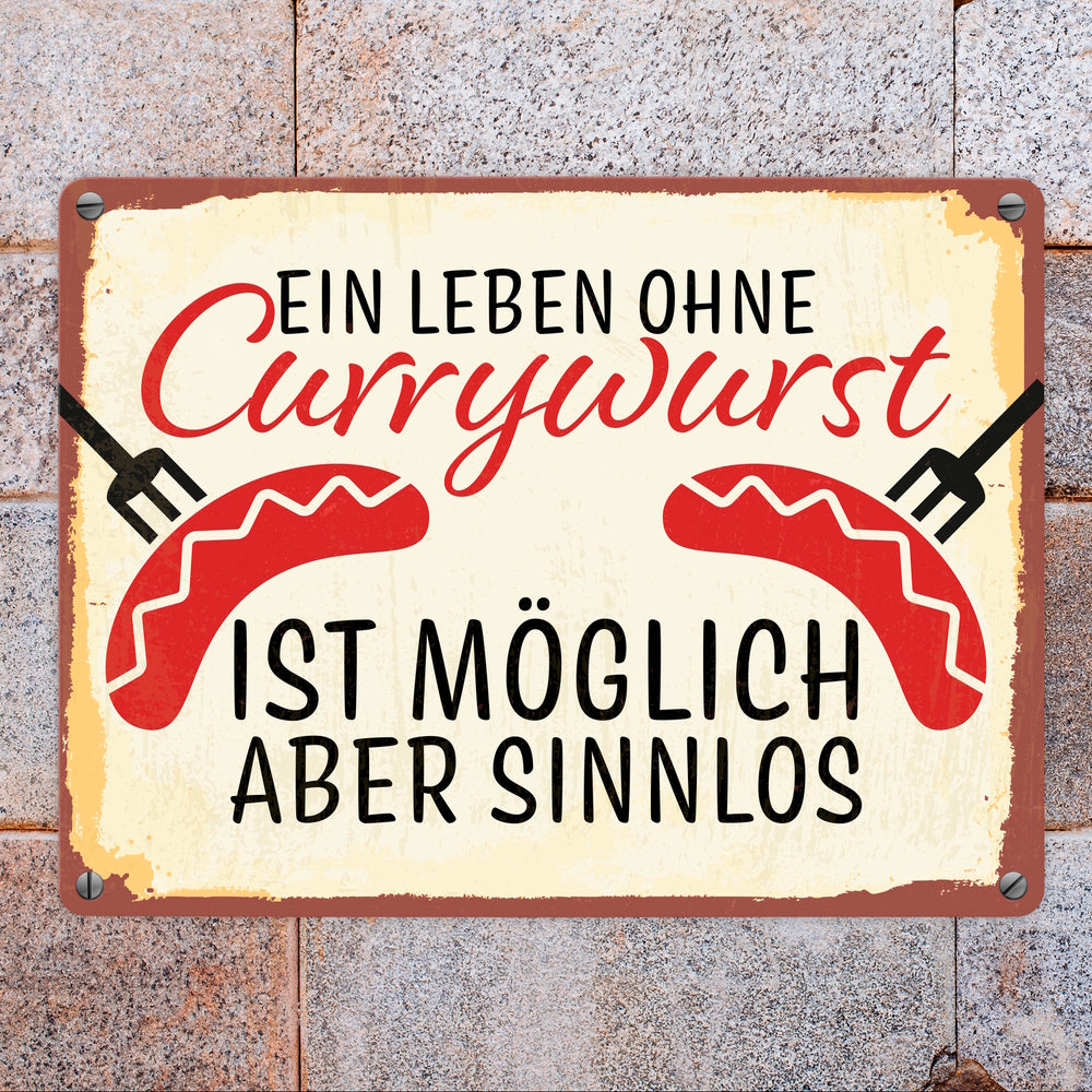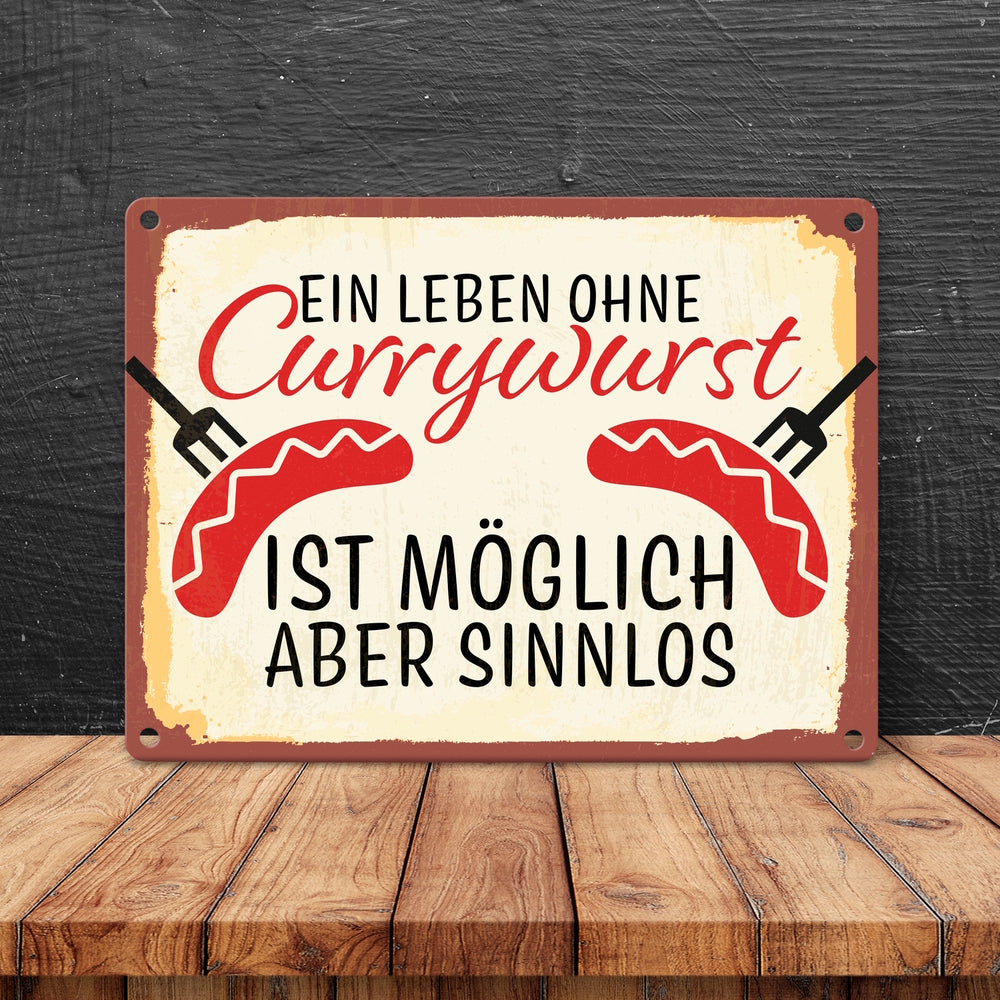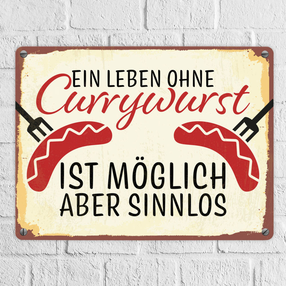 Ein Leben ohne Currywurst ist möglich, aber sinnlos Metallschild mit Wurstmotiv - 15x20 cm ist auf Lager und wird versandt, sobald es wieder verfügbar ist