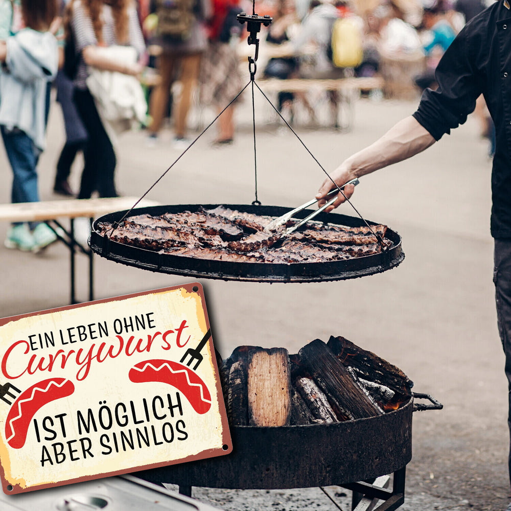 - 1x Ein Leben ohne Currywurst ist möglich, aber sinnlos Metallschild mit Wurstmotiv in der gewählten Größe