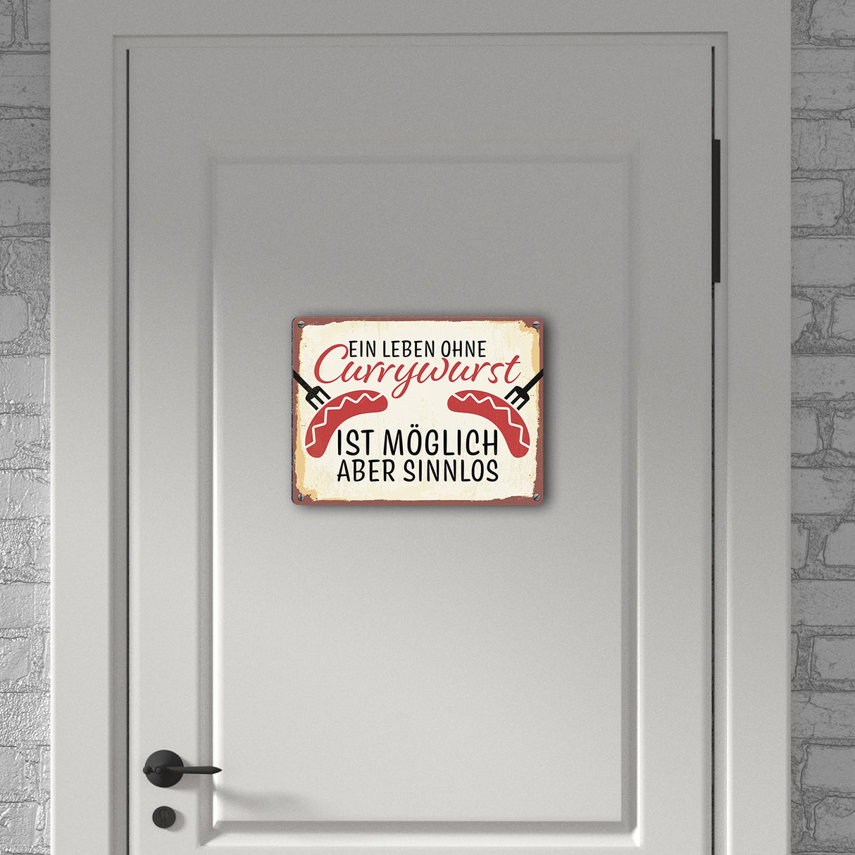 Ein Leben ohne Currywurst ist möglich, aber sinnlos Metallschild mit Wurstmotiv