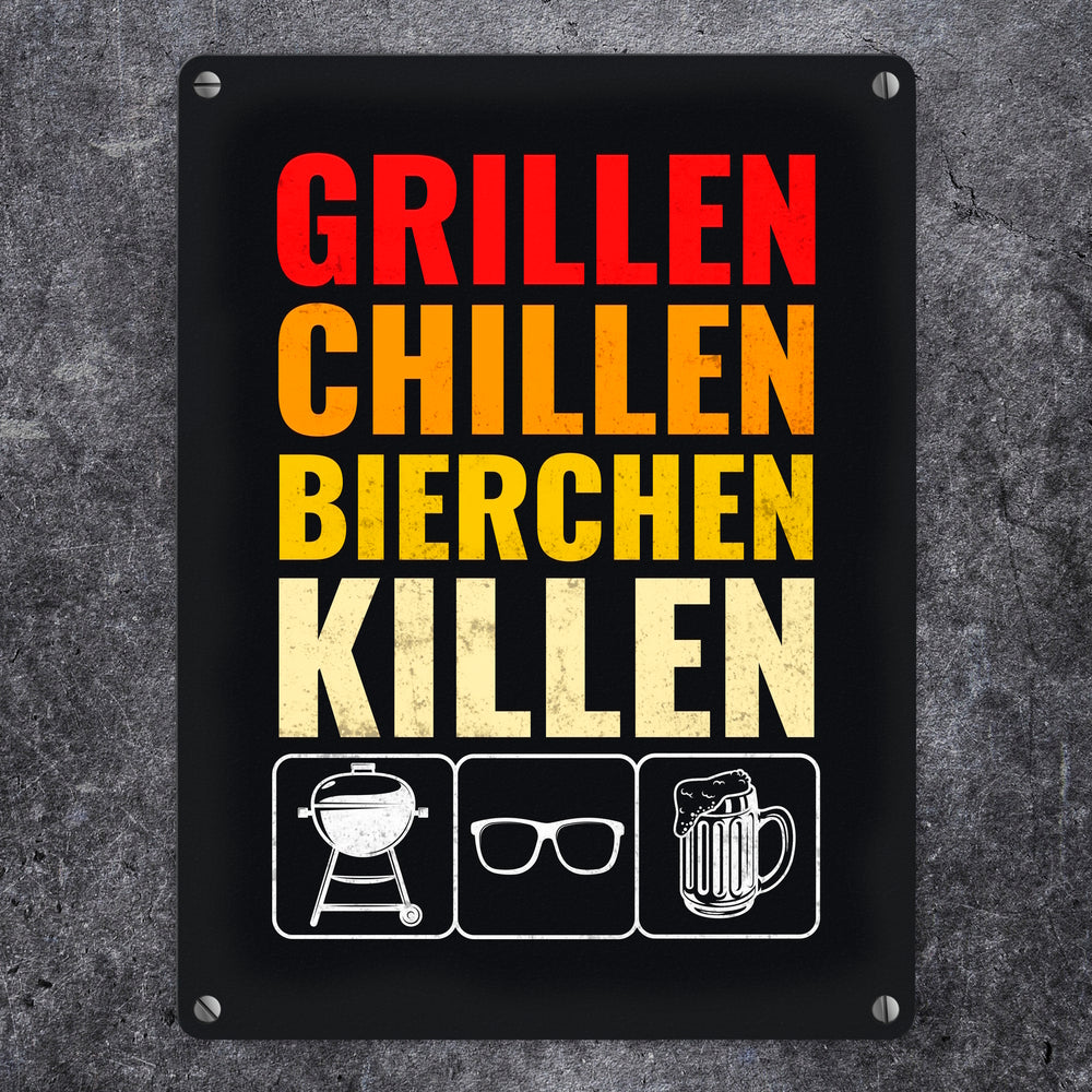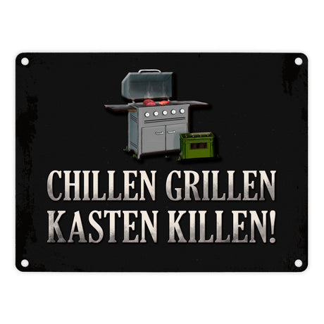 Chillen, grillen, Kasten killen Metallschild mit Grill Motiv