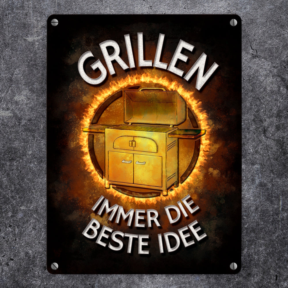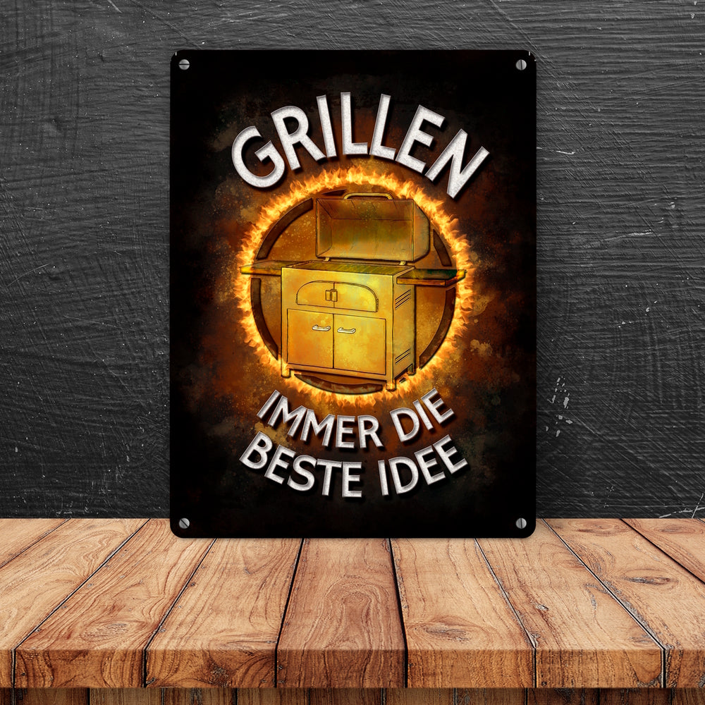 - 1x Grillen - immer die beste Idee Metallschild in der gewählten Größe