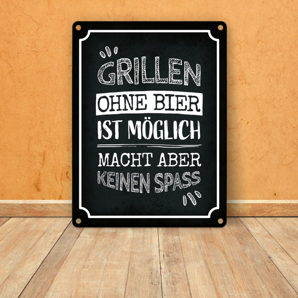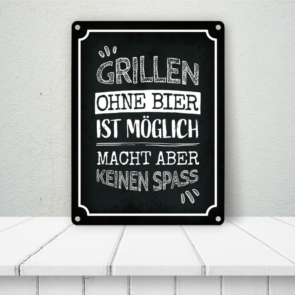 Grillen ohne Bier ist möglich macht aber keinen Spaß Metallschild