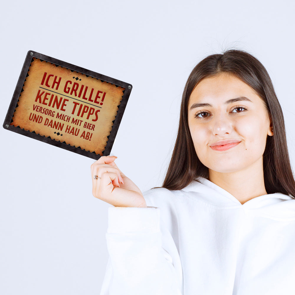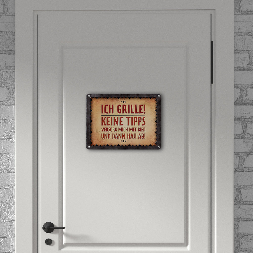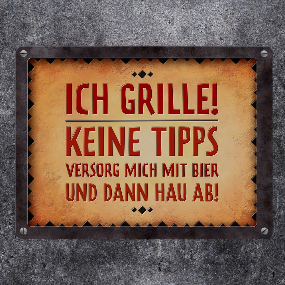 - 1x Ich grille! Versorg mich mit Bier und hau ab Metallschild in der gewählten Größe