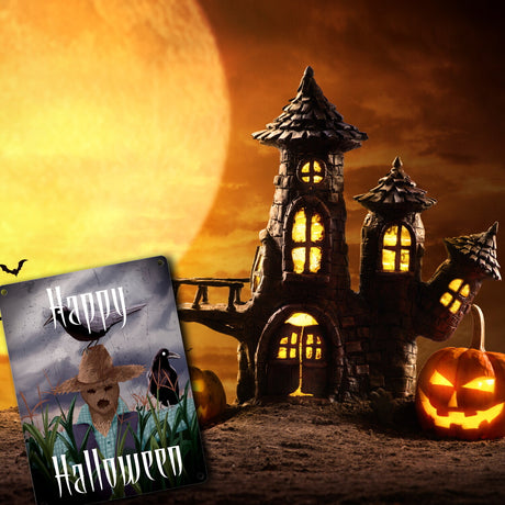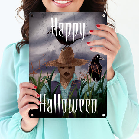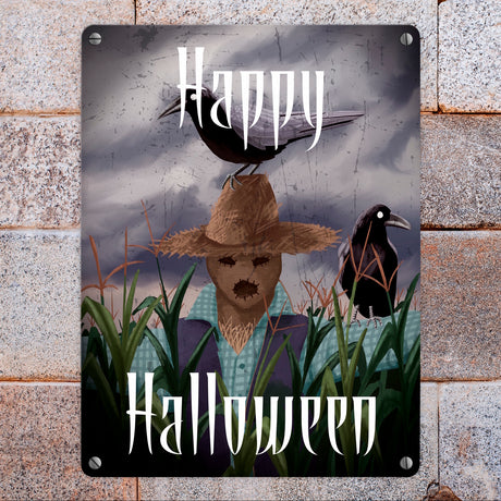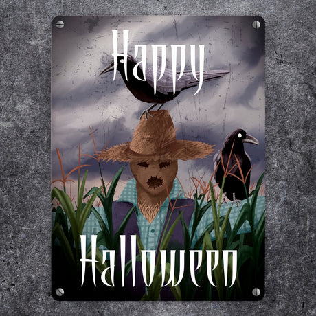 Ab €8,95Grundpreis /Nicht verfügbarAuf LagerMetallschild mit gruseliger Vogelscheuche und Schriftzug - Happy Halloween