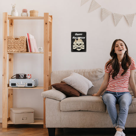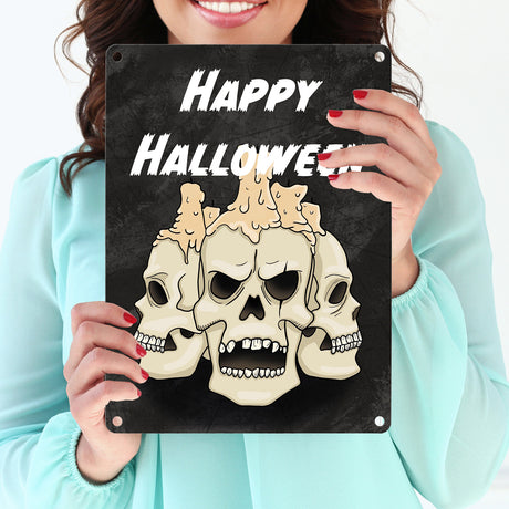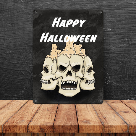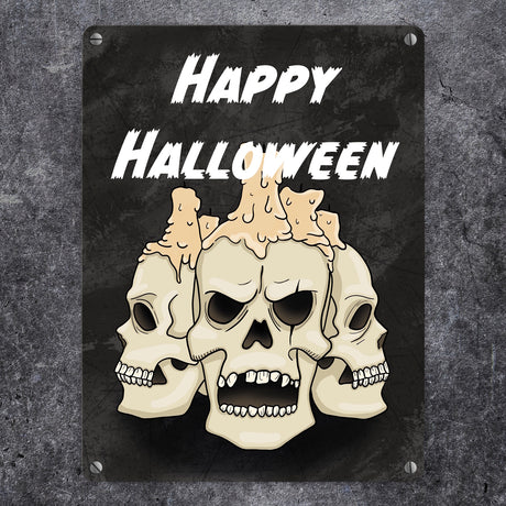 Ab €16,95Grundpreis /Nicht verfügbarAuf LagerMetallschild für Halloween mit Totenköpfen und Schriftzug - Happy Halloween