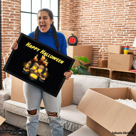 Fußmatte mit Kürbiskopf Motiv und Happy Halloween Schriftzug