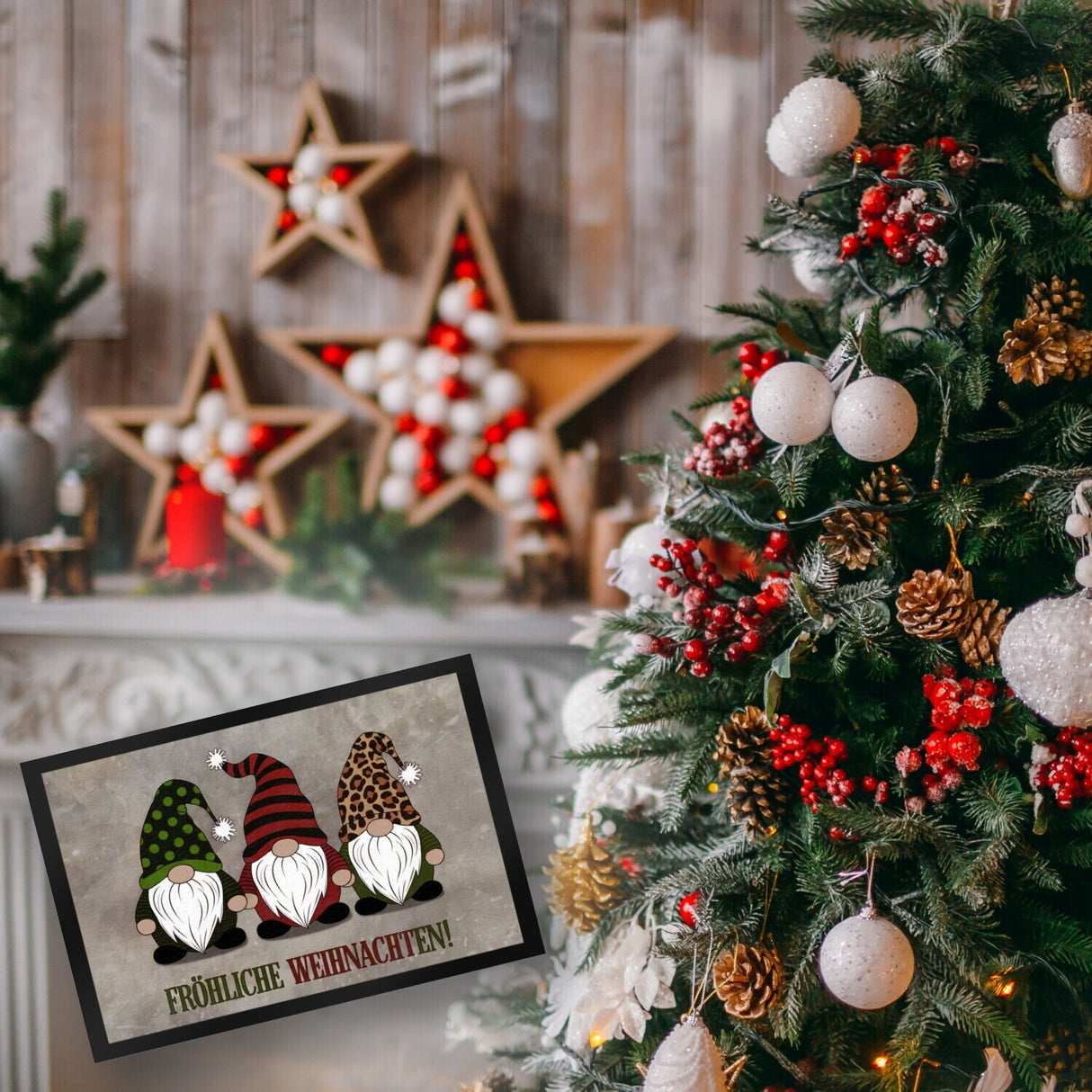 - 1x Drei Wichtel - Fröhliche Weihnachten Fußmatte in 35x50 cm in der gewählten Größe