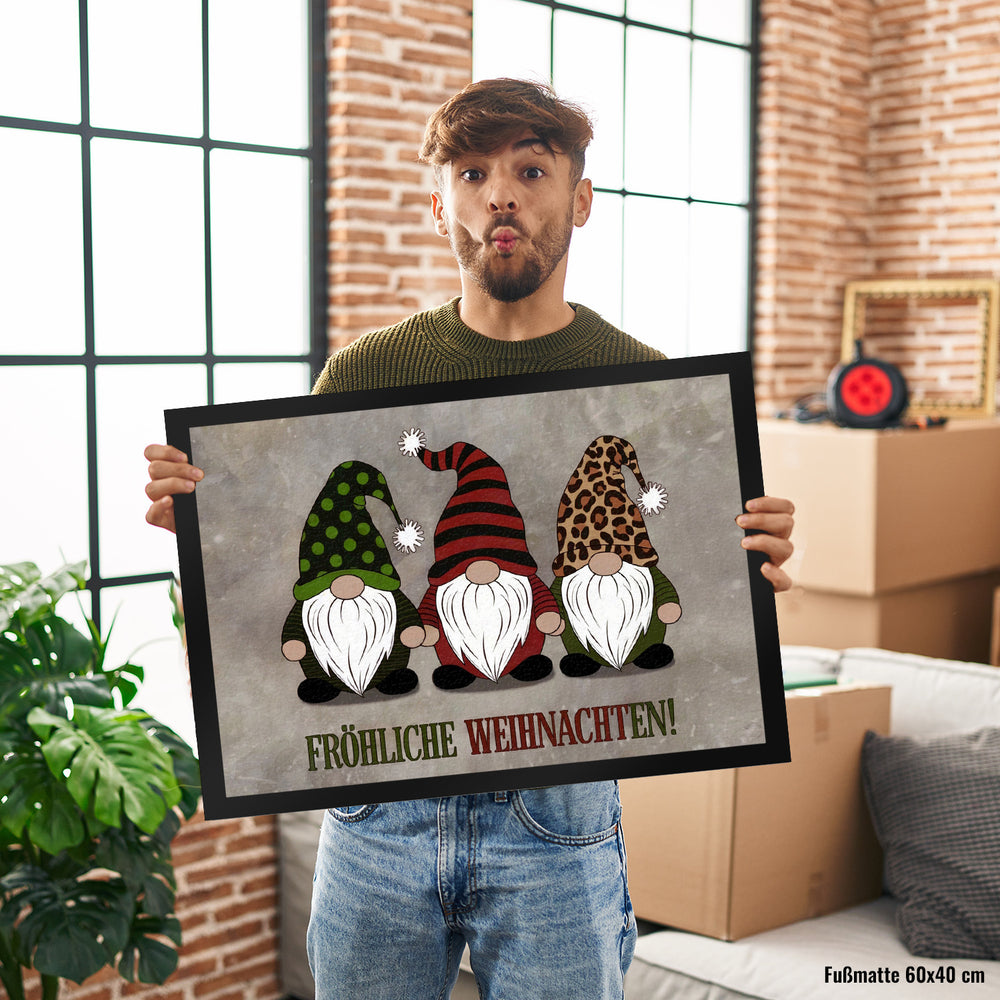 Drei Wichtel - Fröhliche Weihnachten Fußmatte in 35x50 cm