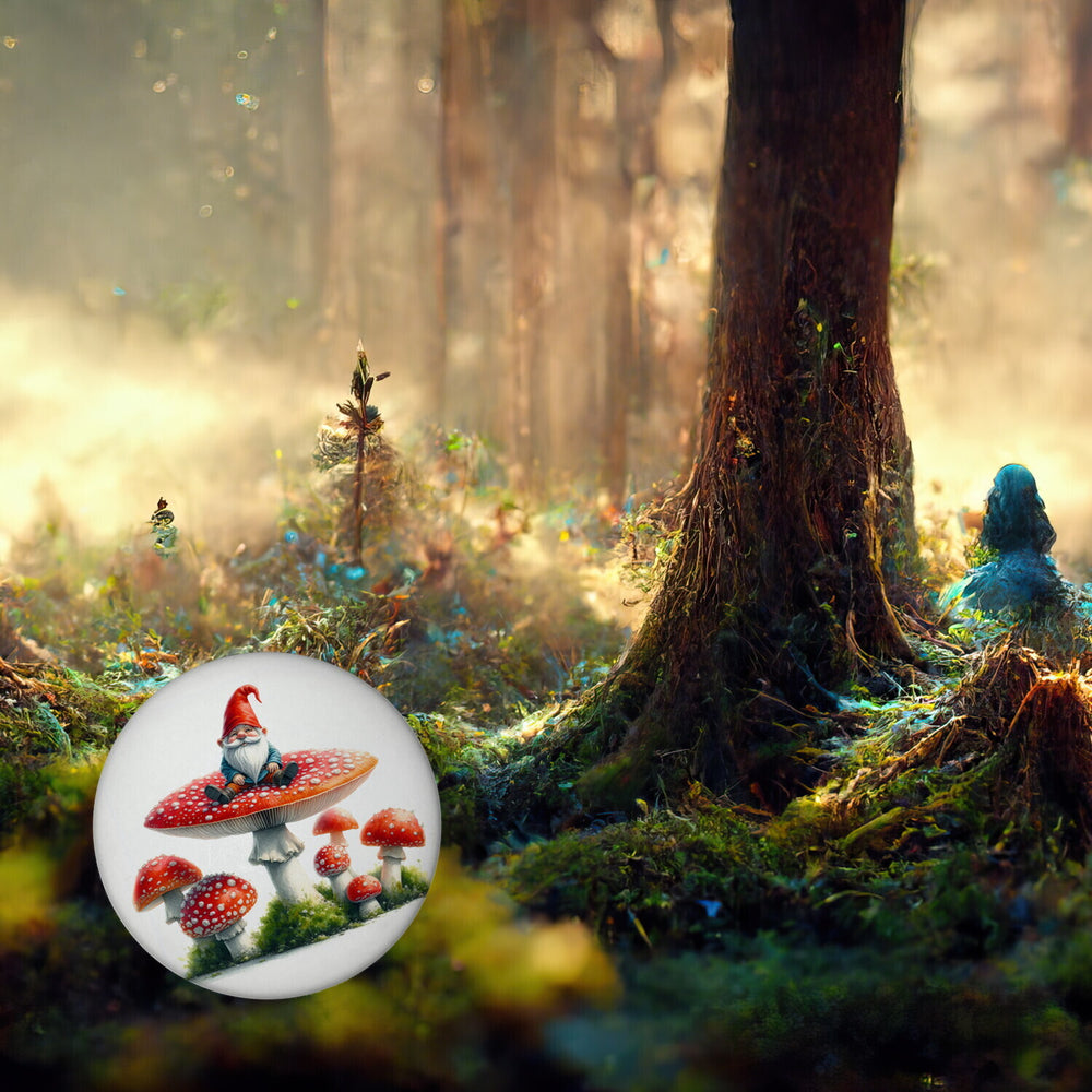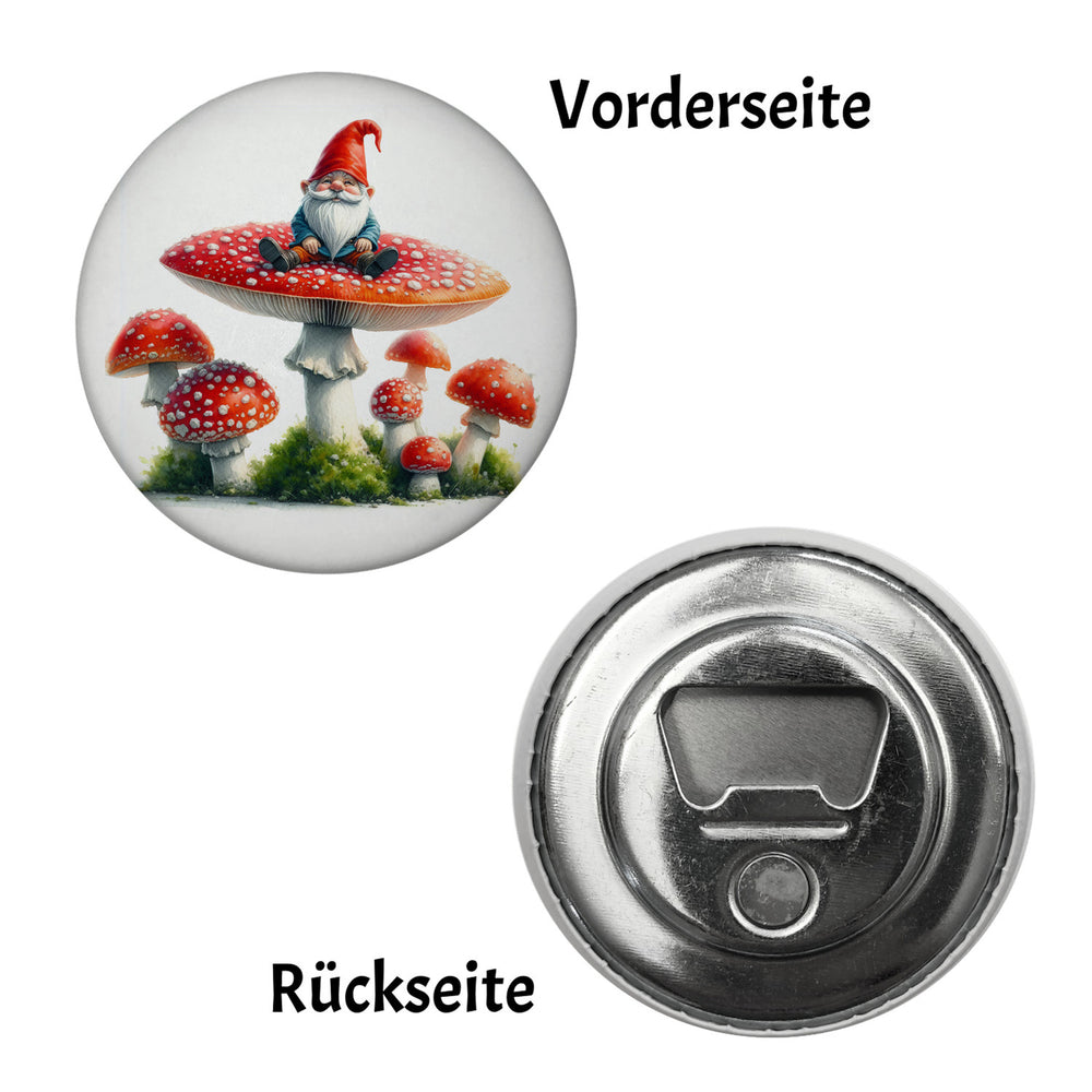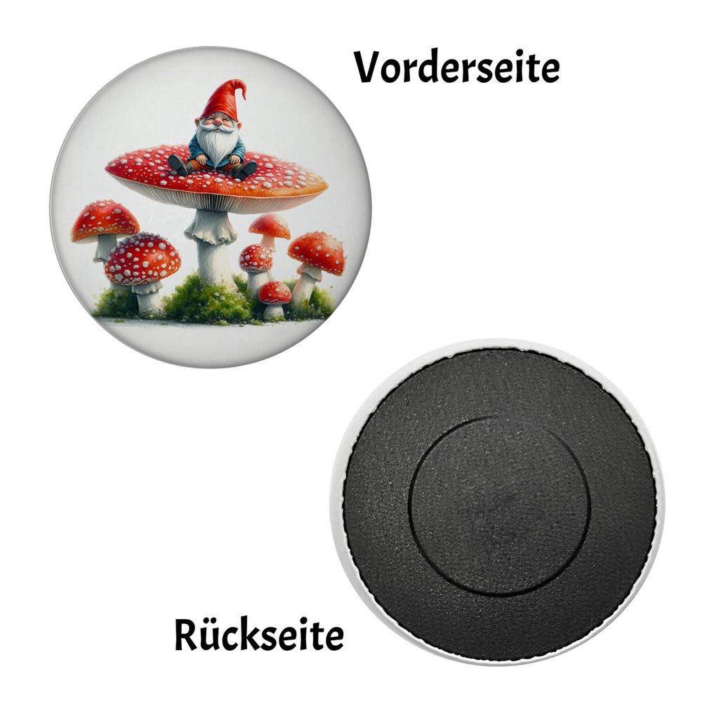 - 1x Gartenzwerg auf einem Fliegenpilz Magnet rund in der gewählten Ausführung
