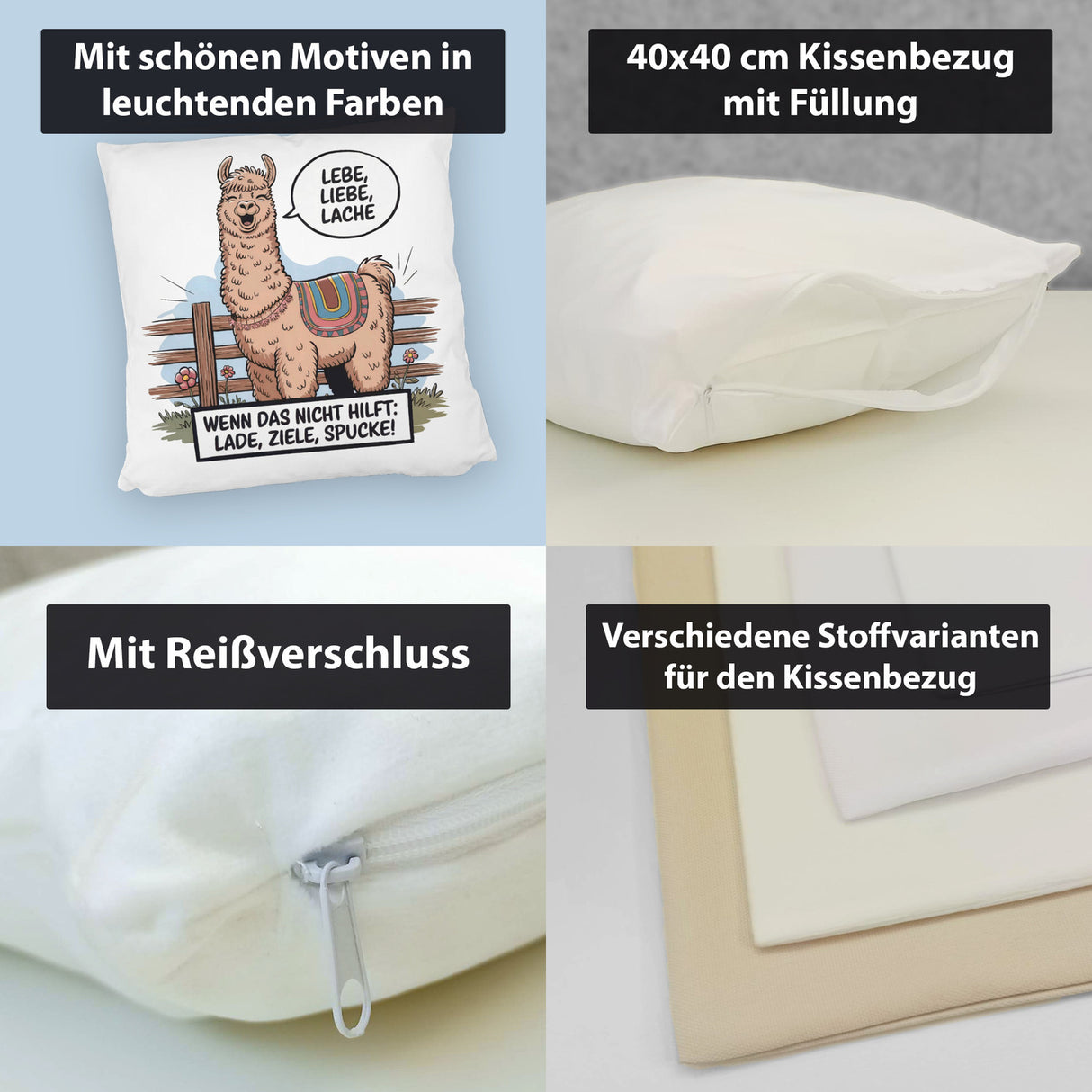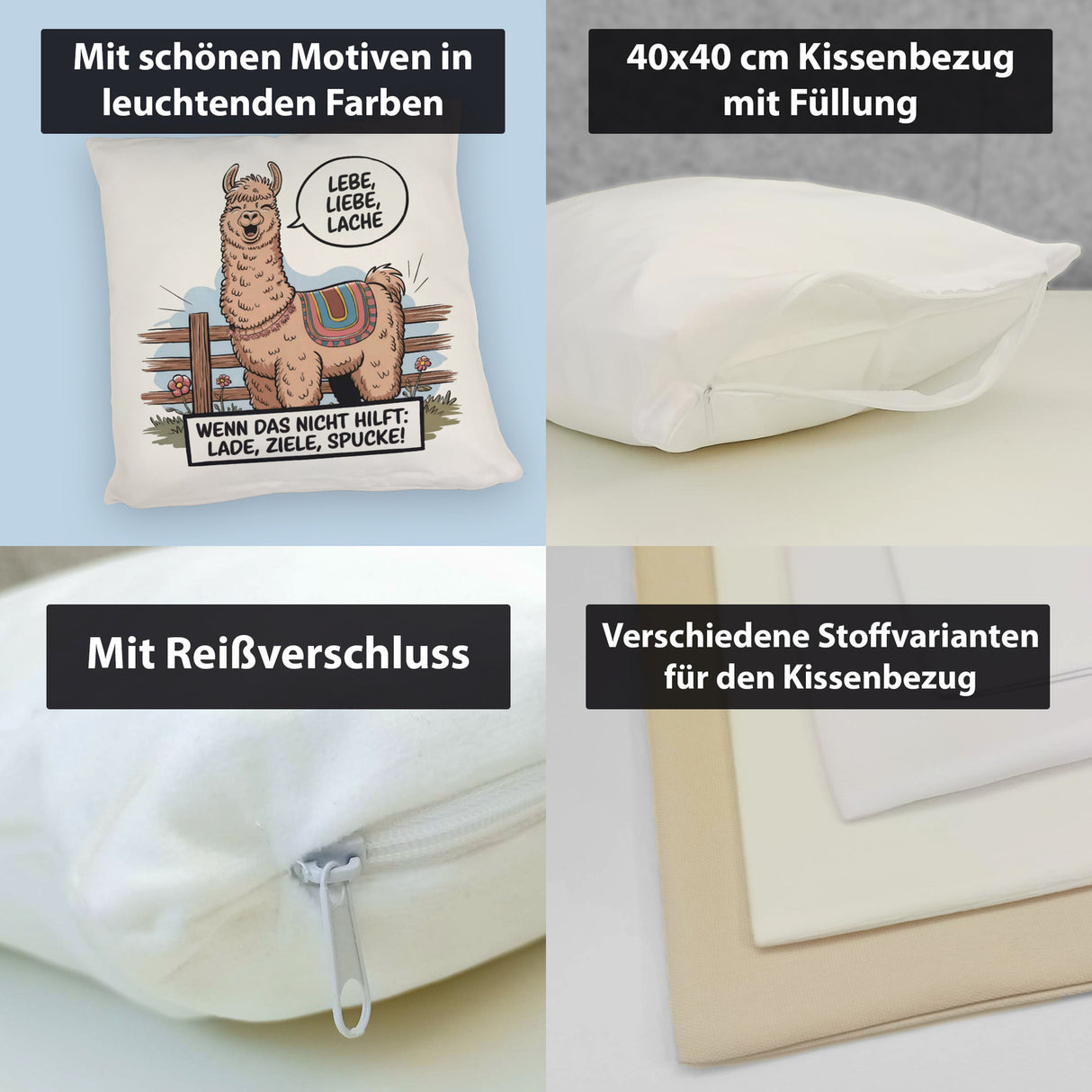 • 1x Lachendes Lama - Lebe liebe lache Kissen in der gewählten Ausführung