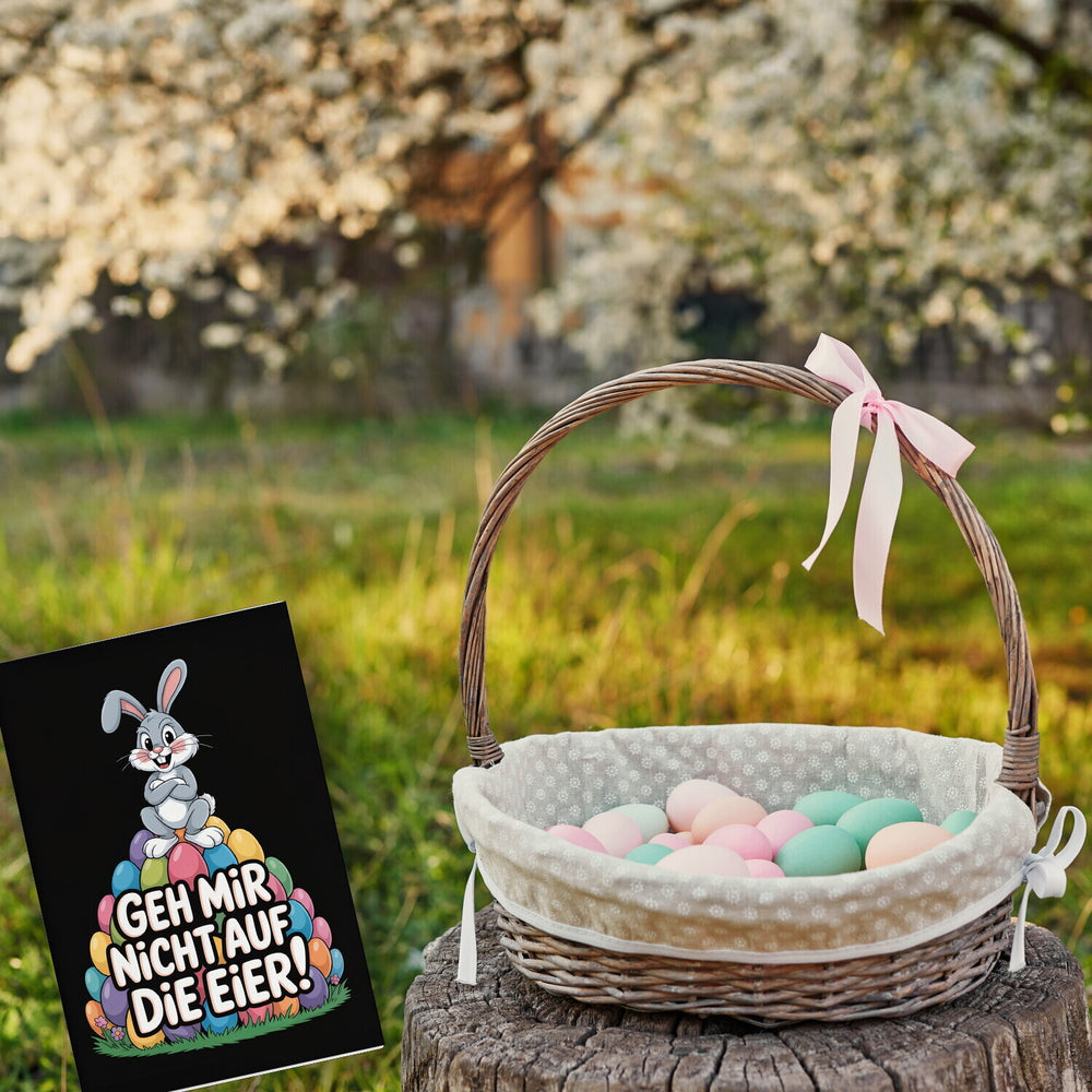 - Der Osterhasen Cartoon Souvenir Magnet zeigt einen frechen Osterhasen auf einem farbenfrohen Eierberg. Der schelmische Hase grinst verschmitzt, während er auf einer smaragdgrünen Wiese thront, die mit winzigen Frühlingsblumen geschmückt ist. Der witzige Spruch "Geh mir nicht auf die Eier!" vollendet das humorvolle Design.
