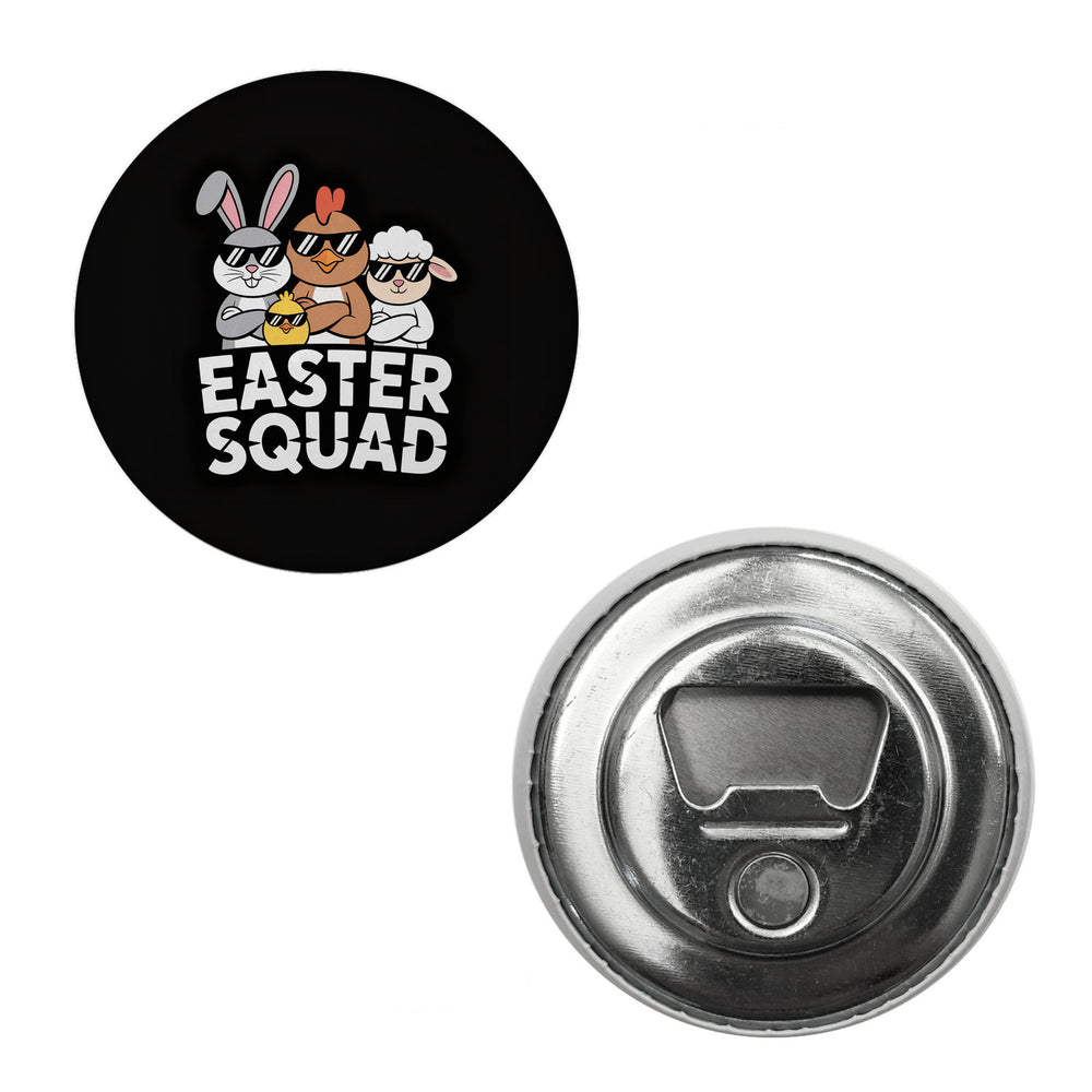 - Dieses lustige Ostertiere EASTER SQUAD Magnet zaubert jedem ein Schmunzeln ins Gesicht! Der runde Magnet zeigt ein cooles Oster-Team: Hase, Henne mit Küken und Lamm, alle in lässigen Posen und mit Sonnenbrillen. Der fetzige Schriftzug EASTER SQUAD verleiht dem Design noch mehr Coolness. Perfekt für jeden Osterfan!