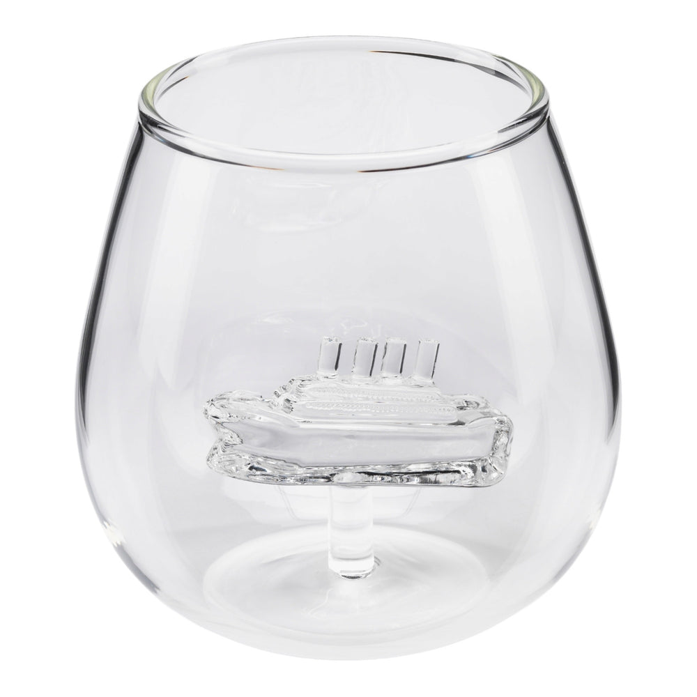 - Dieses kunstvoll gestaltete Trinkglas fasst stolze 500 ml und beeindruckt mit seinem runden, bauchigen Design. Im Inneren befindet sich ein filigranes Glas-Schiff, das scheinbar im Getränk sinkt. Fülle das Glas bis kurz unter das Schiff auf und schon hast du eine witzige und faszinierende Illusion. Glaskunst vom Feinsten!