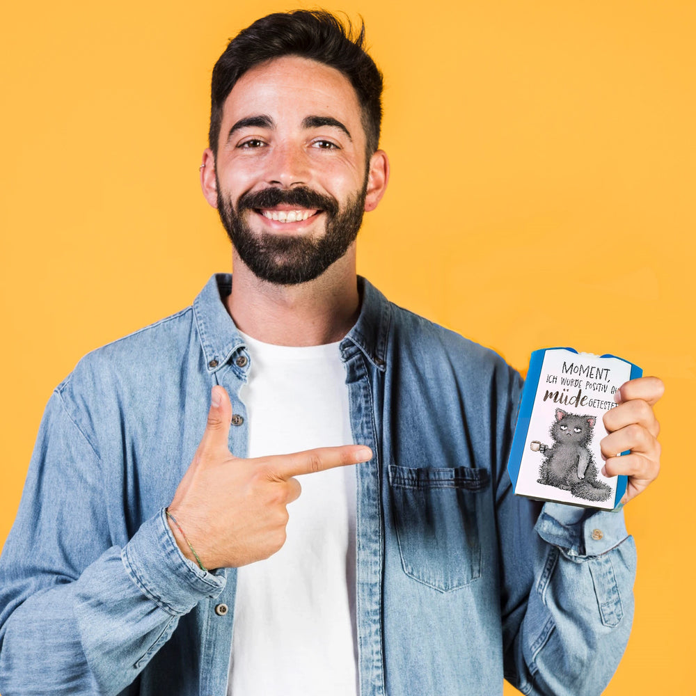 - Lieferumfang: 1x Katze mit Tasse Parkscheibe und Spruch positiv auf müde getestet