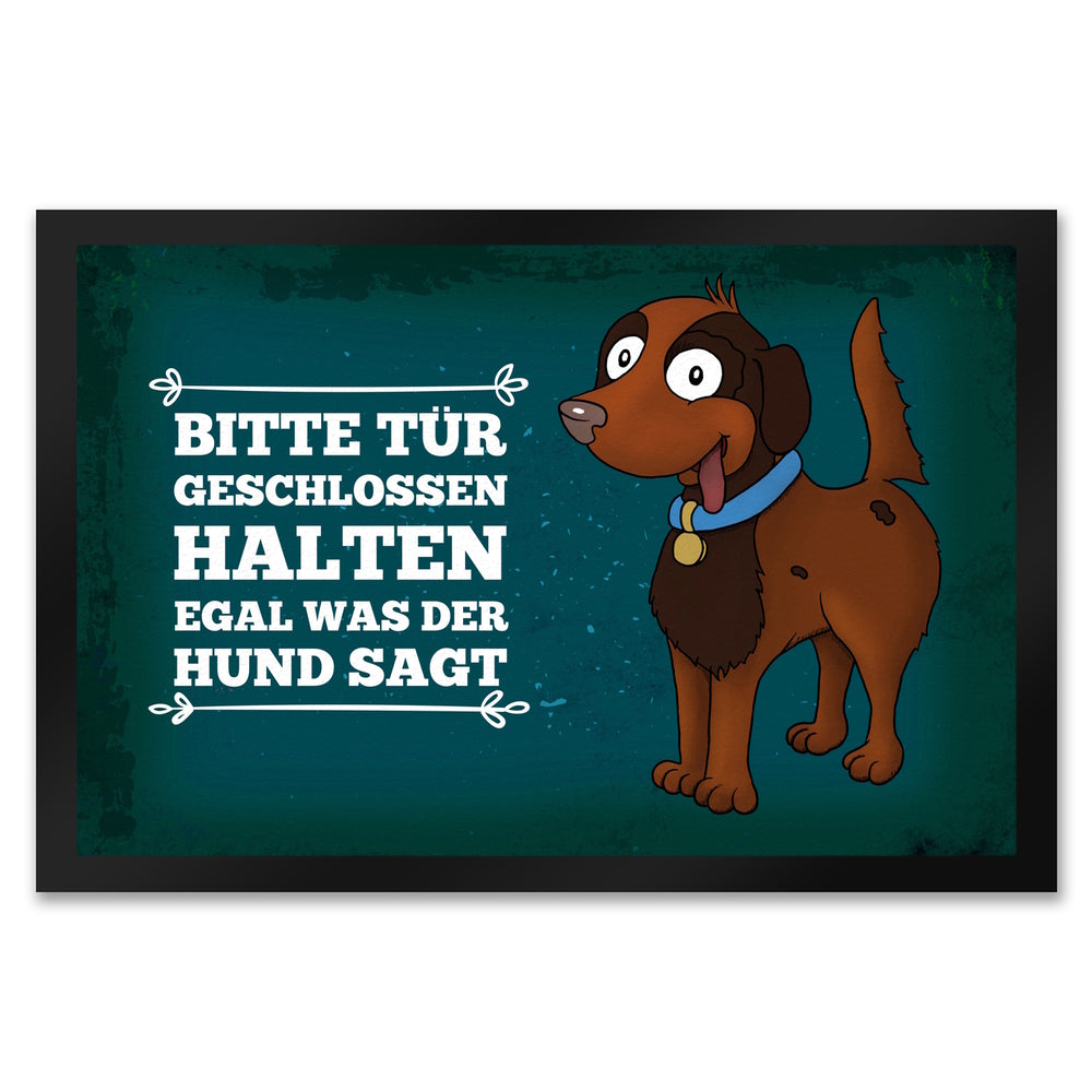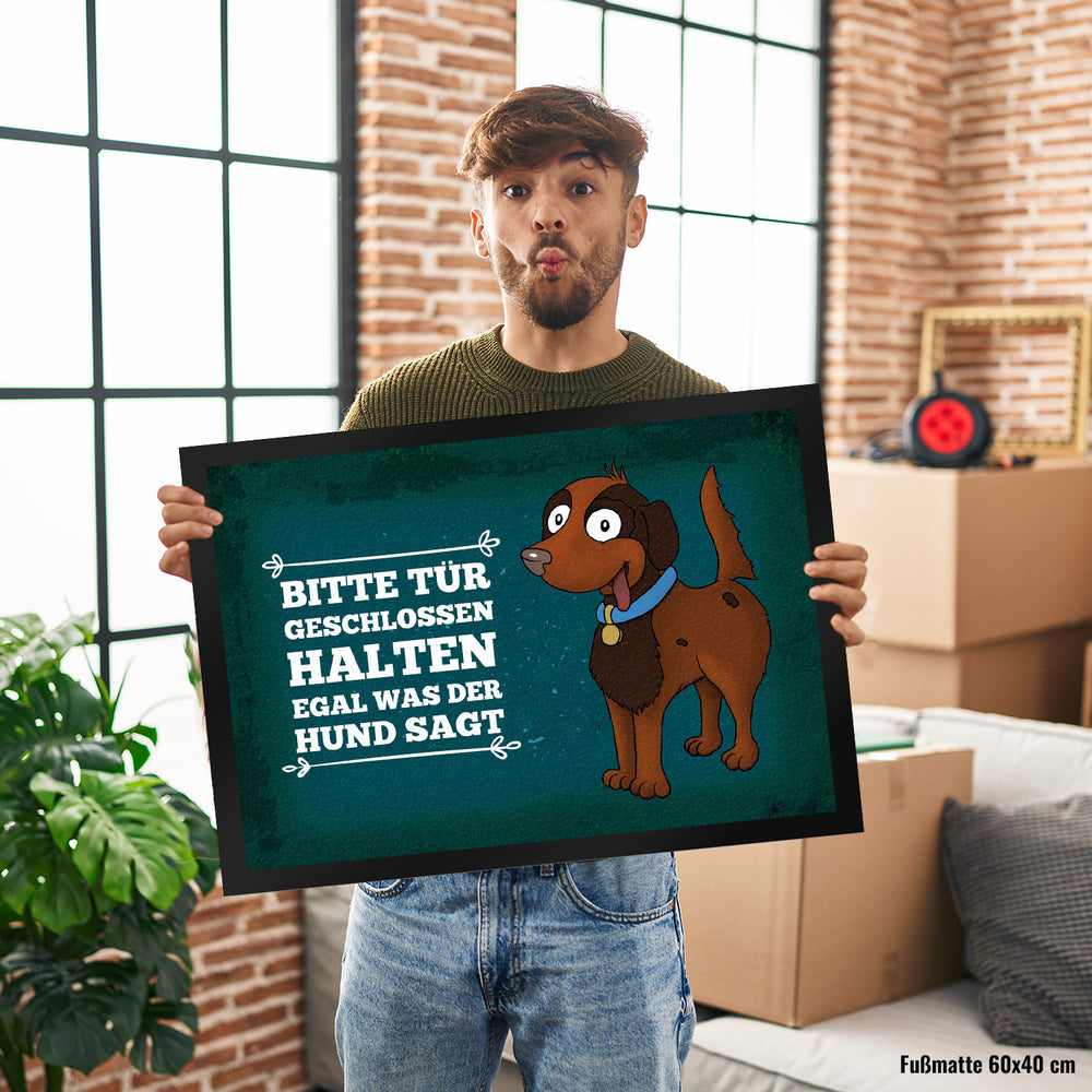 - 1x Bitte Tür geschlossen halten egal was der Hund sagt Fußmatte in der gewählten Größe