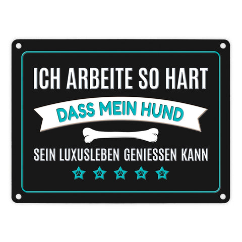 Luxusleben Hund Metallschild mit Knochen Motiv - Haustier Arbeit Luxus Rudel Hunde Rüde Hündin