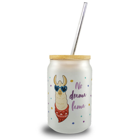 No drama lama Trinkglas mit Bambusdeckel coolem Lama