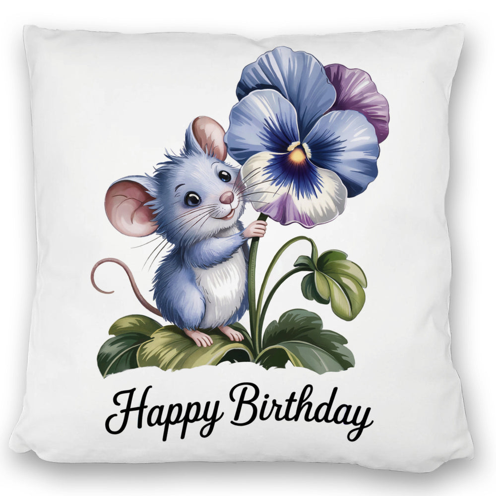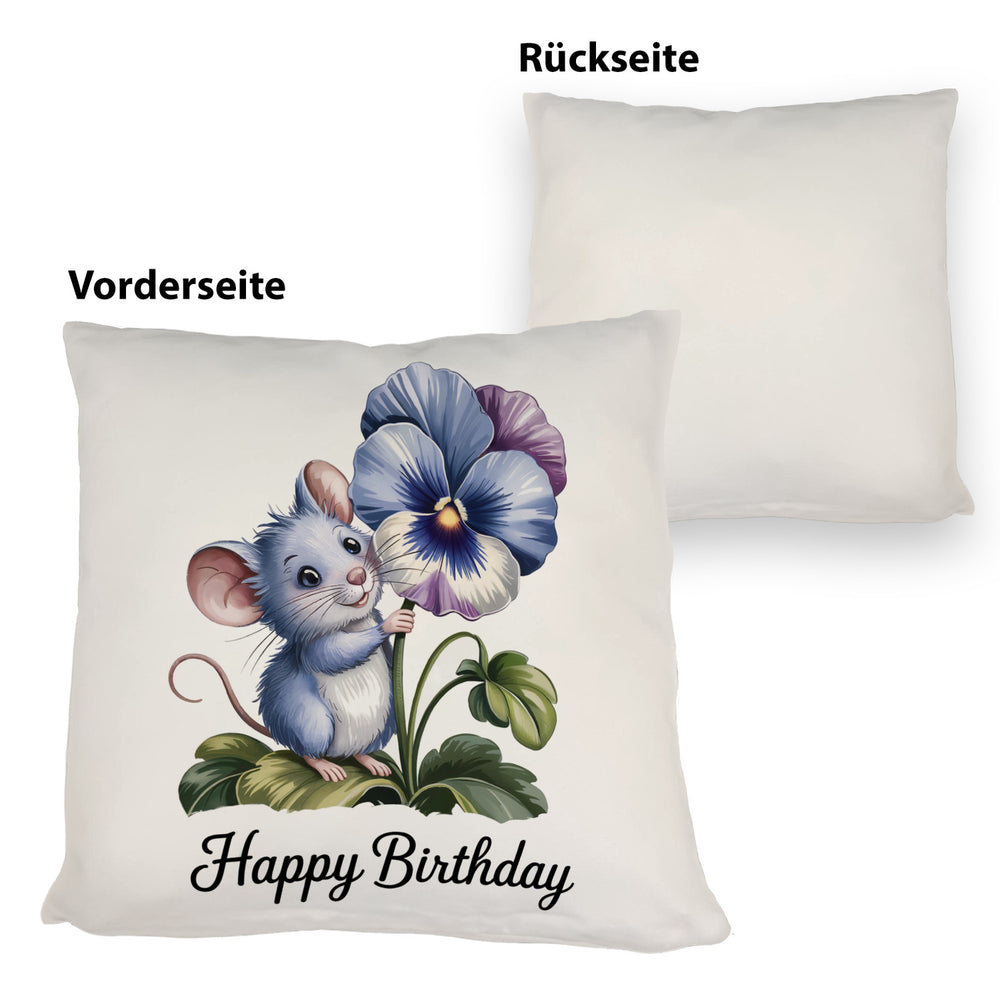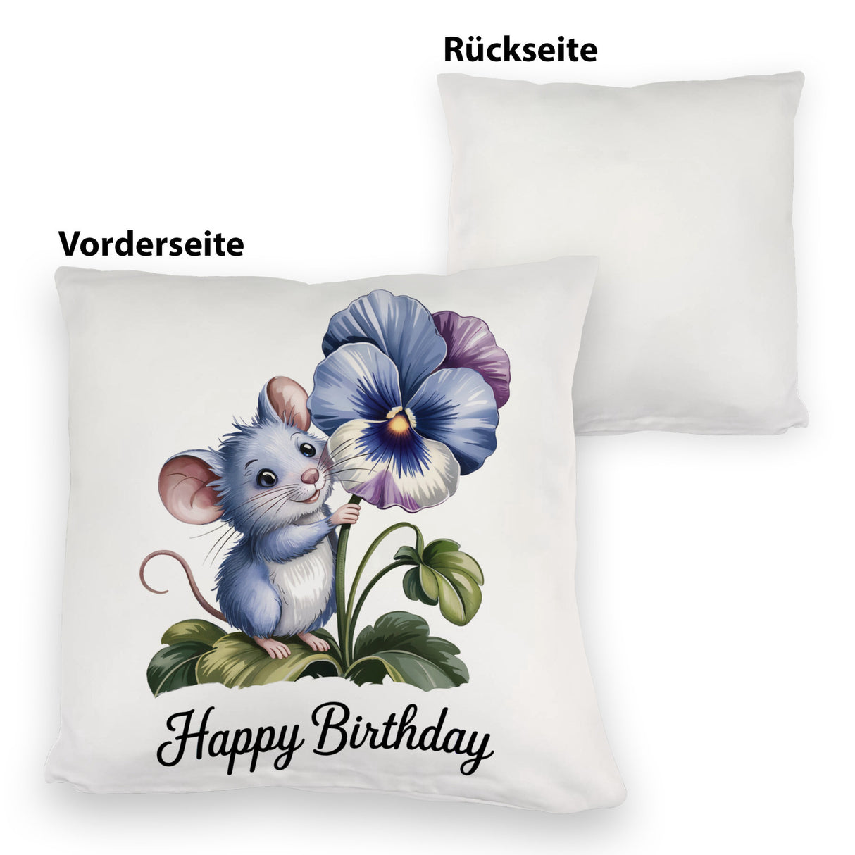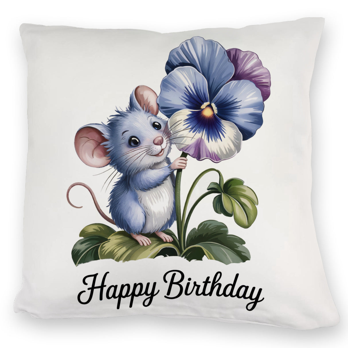 Maus mit Stiefmütterchen Kissen HAPPY BIRTHDAY