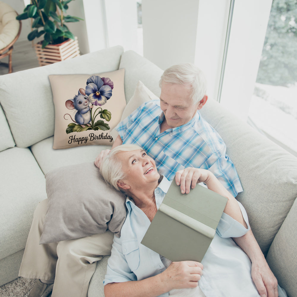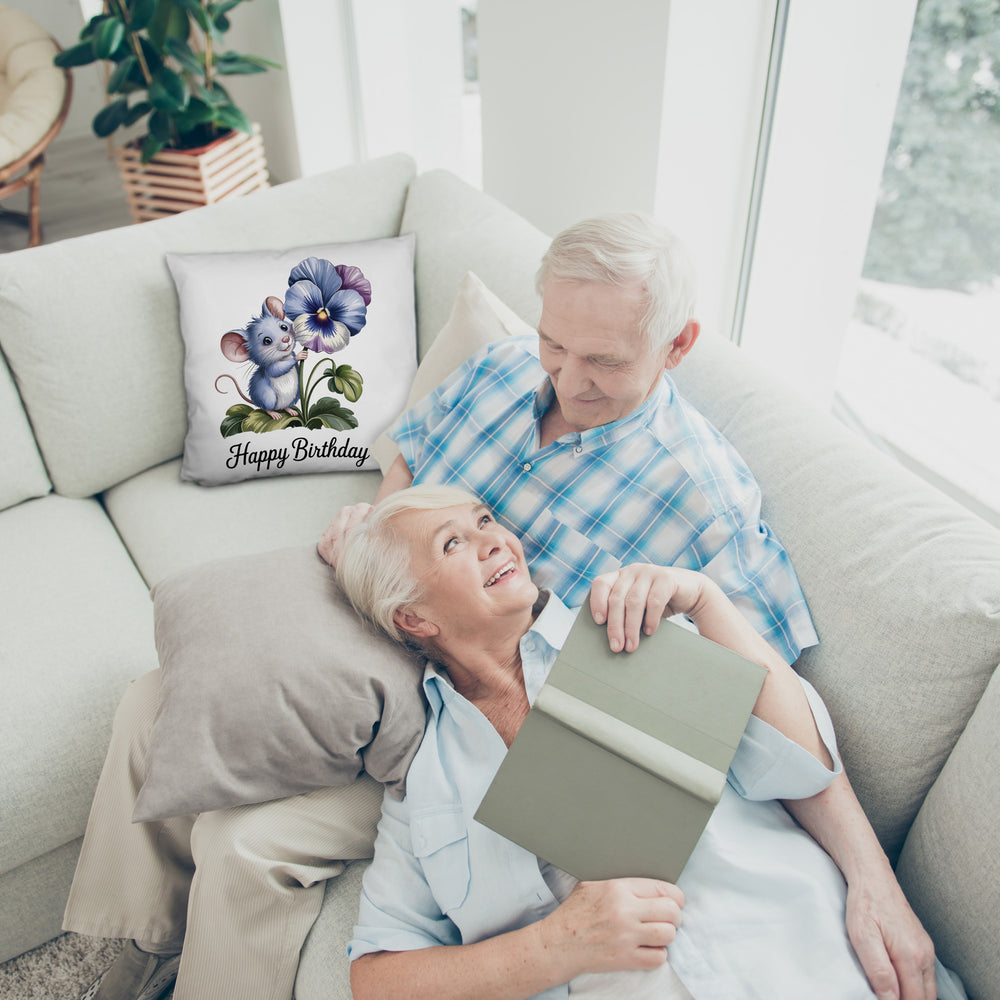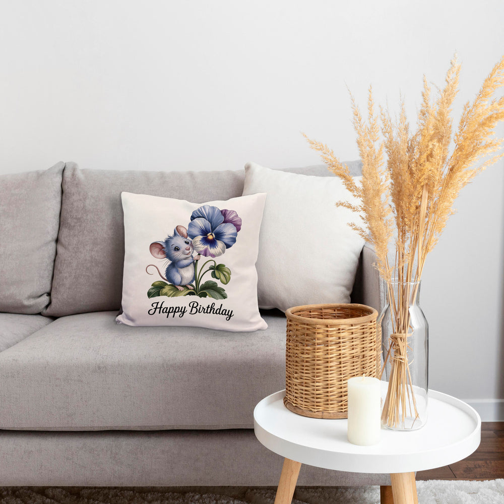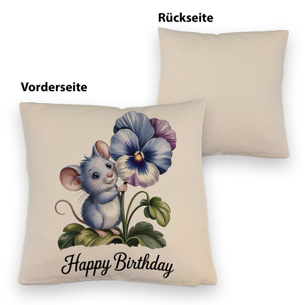 Maus mit Stiefmütterchen Kissen HAPPY BIRTHDAY